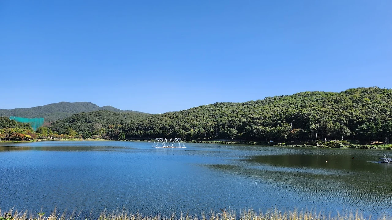 거울 같은 호수는 삼면이 나지막한 산으로 편안하게 둘러싸여 파란 하늘을 반사하고 있다. 때마침 오늘 날씨도 좋아 하늘은 맑고 바람도 선선하여 전형적인 가을 날씨다.
