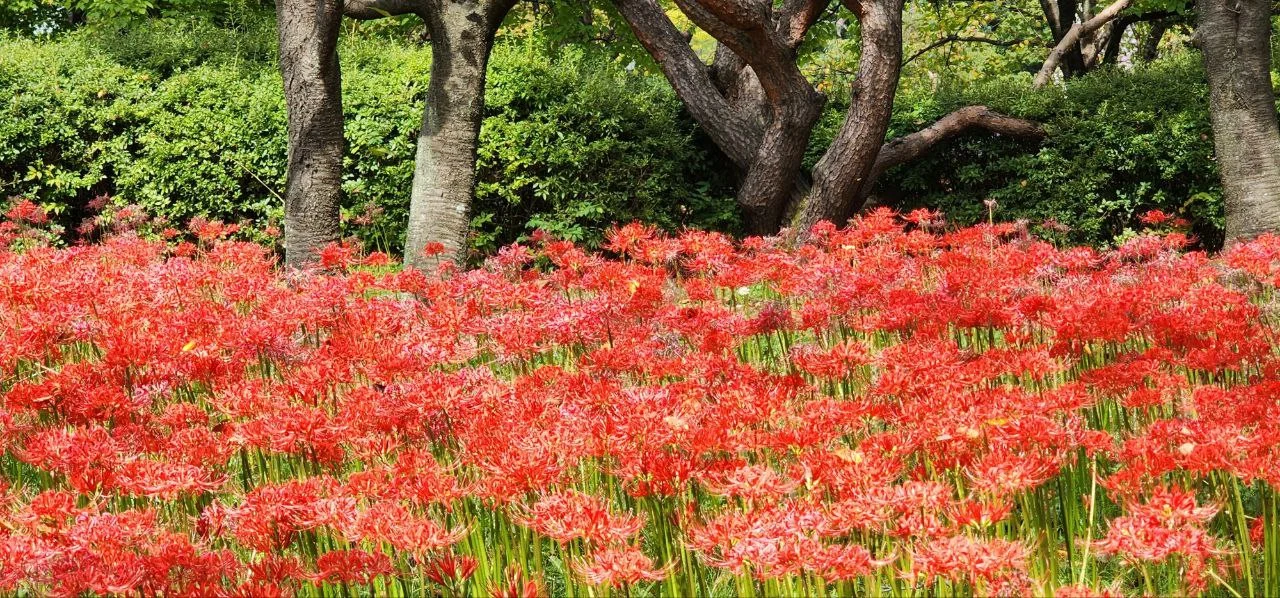 어느 가을날 영광의 불갑사나 고창 선운사에서 꽃무릇 축제가 열린다고 하며 붉게 타오르는 넓은 꽃밭 사진이 뉴스 화면을 장식한다, 그런데 그때 굳이 남쪽까지 멀리 가지 않아도 분당의 중앙공원에서도 꽃무릇을 볼 수 있다는 소식을 들었다. 그게 4년 전 가을이었고 우리는 그때 처음으로 분당 중앙공원에 가서 붉은 양탄자를 넓게 펼쳐 놓은 듯한 꽃무릇 정원을 보며 감탄하고 온 적이 있었다.