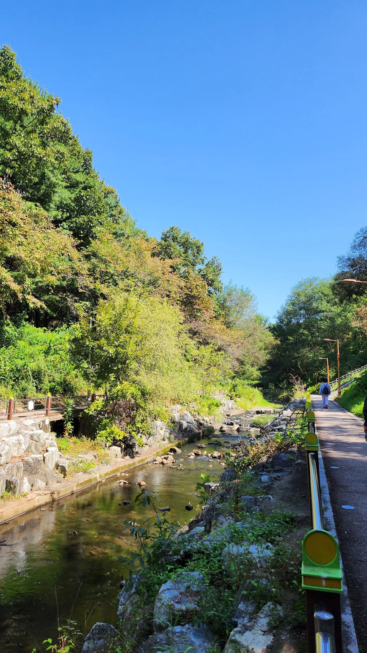 개울옆 양쪽 산책길은 나무가 많고 개울물소리와 어울려 아주 운치가 있는 길이다.