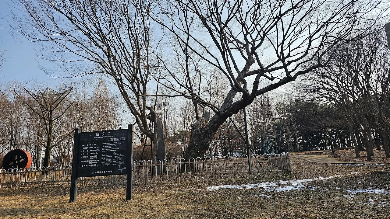 나 홀로 나무는 이곳에 올 때마다 매번 멀리서만 보고 지나가서 무슨 나무인지 여태까지 몰랐는데 이제야 궁금해져서 찾아보니 측백나무라고 한다. 그래서 겨울에도 홀로 푸르구나. 근처에 오래된 은행나무도 한 그루 서 있었지만 지금은 잎이 다 떨어지고 앙상한 가지만 남아 지나다니는 사람들의 관심을 끌지 못하는 것 같다.