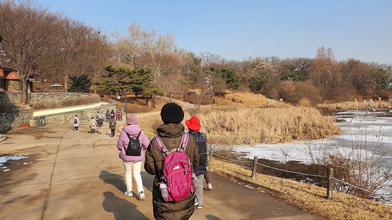 날씨도 춥지 않고 또 오늘이 올해의 마지막 산책날이라서 그런지 올림픽공원역 3번 출구에 모인 친구들이 열아홉이나 된다. 오래간만에 나온 친구도 있고 5년 만에 다시 나온 친구도 있다. 독감도 유행하고 미세먼지 경고도 있어 모두 마스크를 쓰고 나왔지만 오늘 이곳의 공기와 하늘은 맑기만 하다. 나무와 숲이 많아서 그런가?