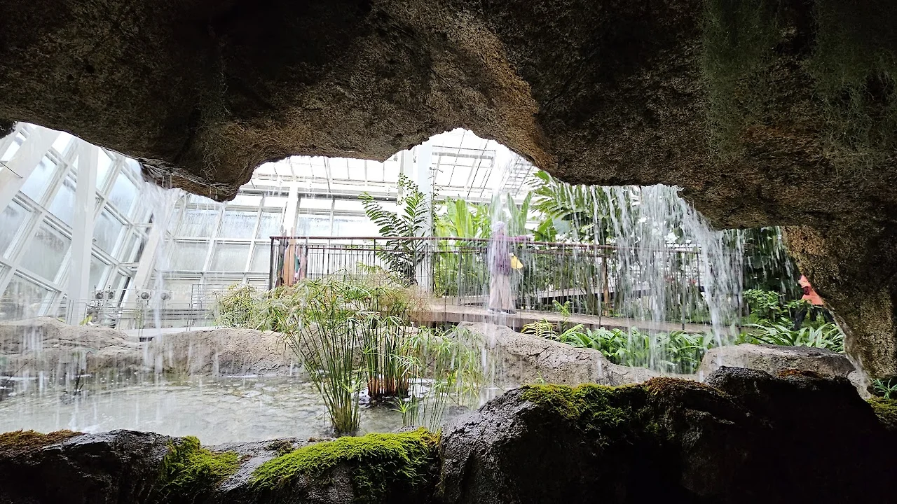 온실 안에는 열대 밀림지대에라도 들어간 듯 키 큰 열대식물로 가득 차 있다. 동굴과 인공폭포도 있어 물소리가 시원하며 이름도 모르는 갖가지 나무와 꽃이 피어 있고 바나나, 파파야, 망고나무에는 열매까지 매달려 있어 보는 이들은 환성을 자아낸다. 온실이 규모가 크다고 할 수는 없으나 내부 구성이 알차고 재미있다.