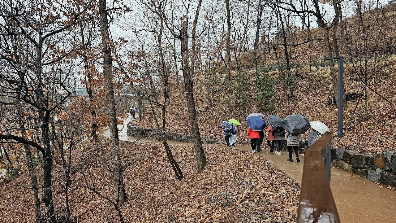 영흥숲길에 들어서니 저 멀리 영흥수목원이라는 간판이 보인다. 걸어가는 도중에도 비는 계속 내리지만 다행히 세찬비는 아니다. 어제까지만 해도 겨울날씨 답지 않게 고온현상을 보인다고 떠들썩하더니 오늘 날씨는 비도 오고 쌀쌀하다.