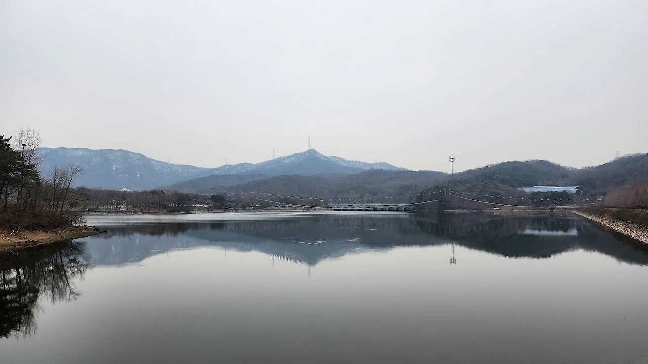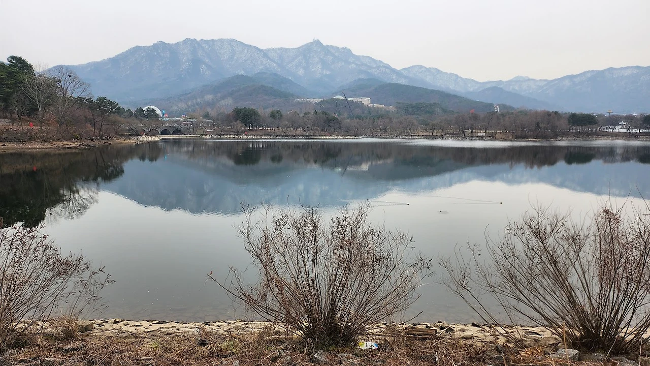 대공원역 앞의 광장으로 나오니 가슴이 탁 트인다. 저만치 보이는 청계산에는 지난주 내린 눈이 아직도 녹지 않고 덮여 있다. 흐릿한 날씨가 산의 능선을 신비하게 드러내며 낭만적인 풍경을 만들어낸다.