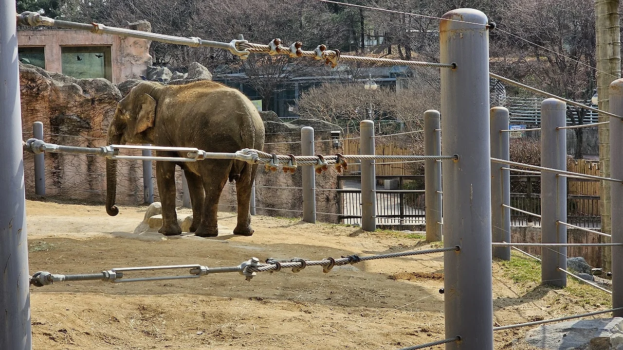 점심 후에는 식당 옆에 있는 동물원으로 들어간다. 지난주에 갔던 과천 대공원 동물원에서는 동물을 몇 마리 보지 못했는데 오늘 어린이대공원 동물원에서는 꽤 여러 동물을 볼 수 있다. 맹수 마을에 들어가니 따스한 양지쪽에서 낮잠을 즐기는 사자부터 표범, 스라소니, 자칼, 흑곰, 여우 등과 코끼리까지 볼 수 있다. 물론 원숭이도 빠지지 않는다. 여러 친구들이 처음 와 본다면서 감탄하며 동물원을 지나면 놀이기구가 늘어선 놀이동산도 있다. 비 오는 평일이어서 그런지 놀이동산에는 아이들이 보이지 않고 한산하다.