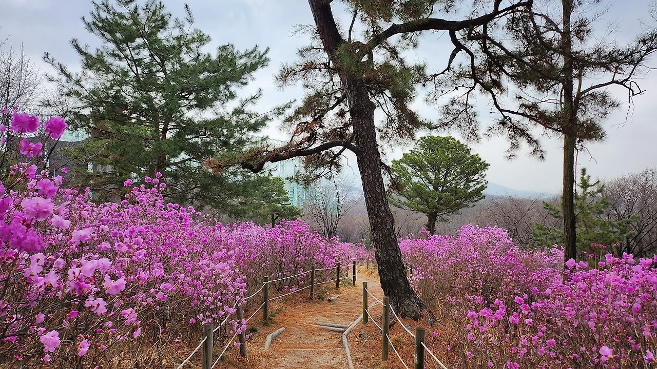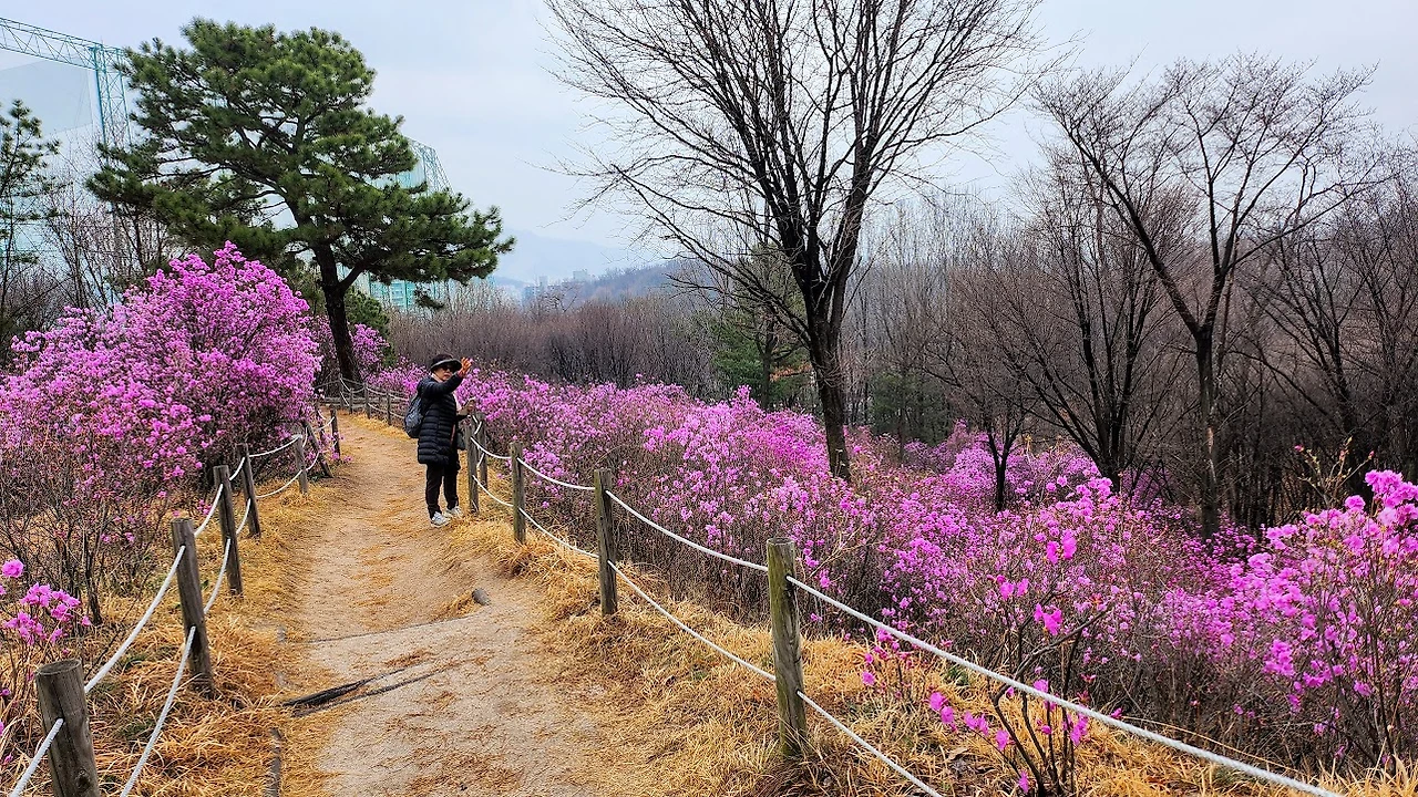 그런데 소문난 곳에는 당연히 사람들이 몰릴 것이므로 오늘 우리는 조용히 진달래 구경을 할 수 있는 곳으로 가기로 한다. 검색해서 발견한 곳이 바로 서울 강북구 오패산 자락에 있는 오동근린공원의 진달래능선과 북서울꿈의 숲이다.