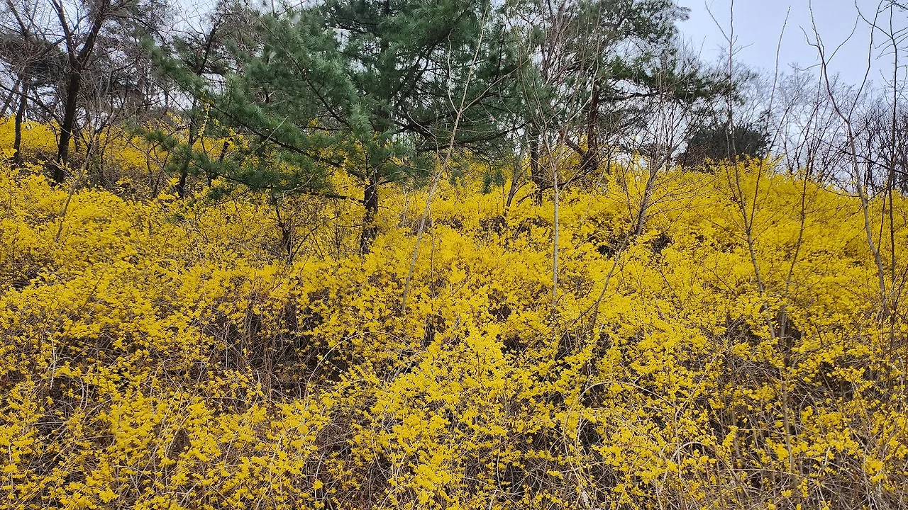 그래서 봄이 되면 벚꽃이 피기만을 애타게 기다리느라고 벚꽃 보다 먼저 피어서 우리에게 봄소식을 일찍 전해주는 꽃들이 많은데 한참 동안 그 사실을 모르고 자랐다. 산수유, 매화, 살구꽃, 개나리, 진달래 등이 있었는데 말이다. 그런데 매화나 산수유는 남쪽에서 일찍 피어 봄소식을 전할 뿐만 아니라 그 열매들이 식용이나 약용으로 가치를 인정받아 사람들이 축제까지 열며 인위적으로 많이 재배하여 관광상품으로도 각광을 받고 있으나 이에 비해 개나리와 진달래는 길가의 축대 위나 야산에서나 볼 수 있는 야생화처럼 취급을 받아 소홀한 대접을 받았던 것 같다. 그렇지만 한편으로 진달래를 보려면 등산을 해서 북한산이나 청계산의 능선처럼(요즘엔 고려산도) 높은 곳에나 올라가야 겨우 볼 수 있기 때문에 특별하고 귀한 꽃으로 생각되기도 하였다.