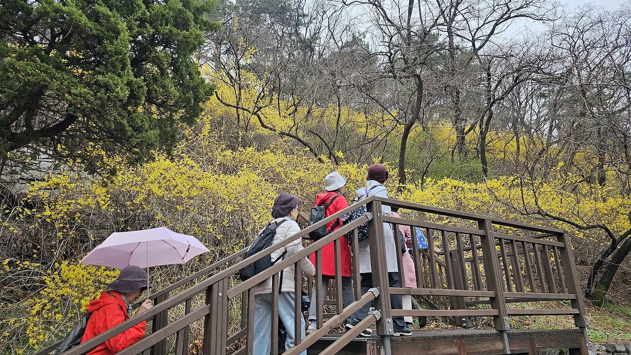 오늘은 진달래부터 개나리, 매화, 산수유까지(돌틈 사이에 핀 제비꽃도) 봄꽃을 한꺼번에 보게 되어 모두들 행복해한다. 그런데 하루종일 보슬비가 오다 말다 하며 계속 하늘이 흐렸으니, 날씨가 개어 파란 하늘까지 보았더라면 더 좋았을 텐데,라고 내가 말하자 어떤 친구가 오늘은 더 바라지 말자고 한다. 맞다! 오늘 하루에 본 모든 것에만 감사해야겠지?
