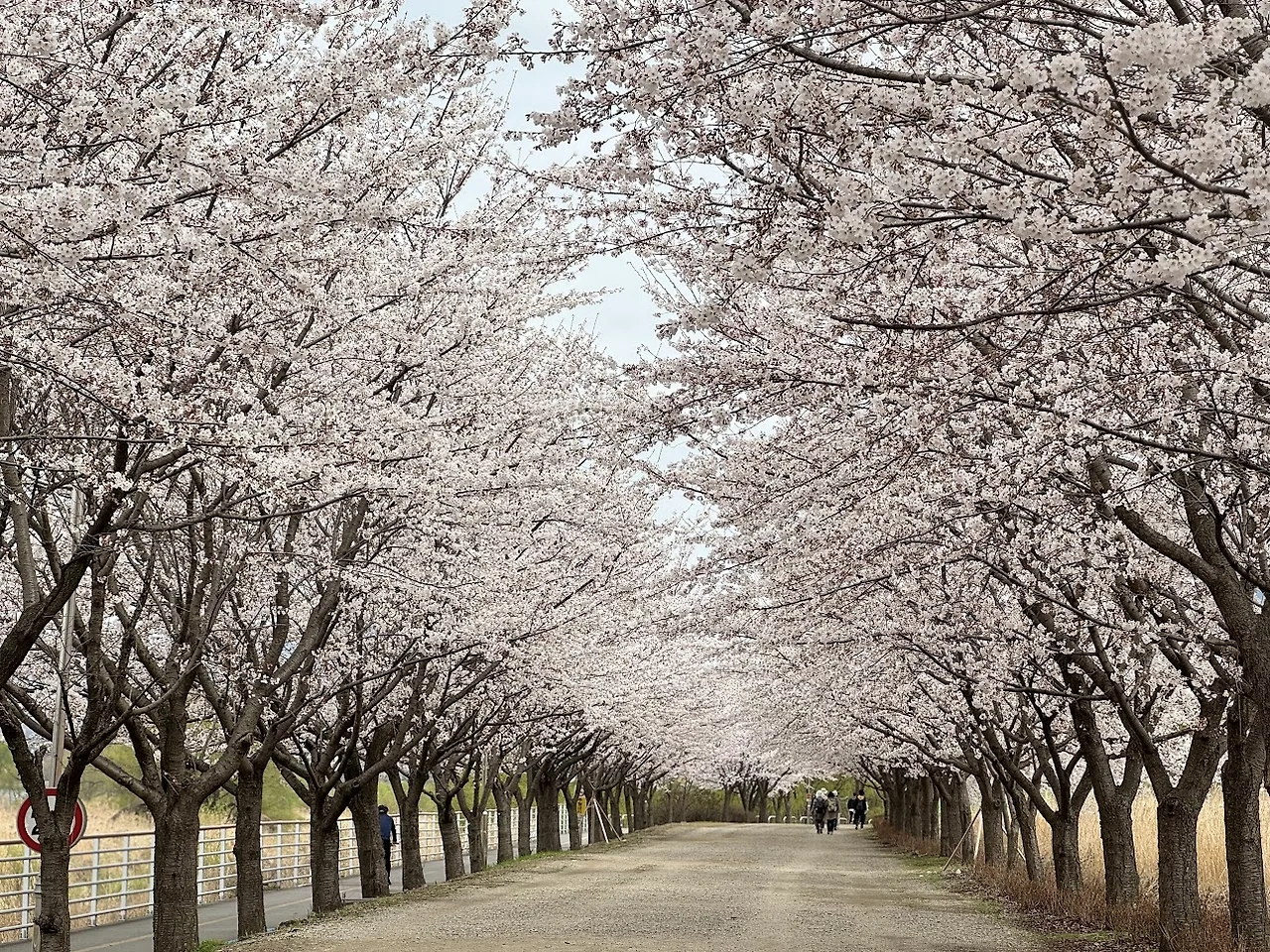 여기에서 보이는 건너편 강변이 미사리인데 그쪽 강변로에도 하얗게 벚꽃 산책길이 이어지고 있다. 욕심 같아서는 오늘 계속해서 미사경정공원까지도 걸어가고 싶으나 아무래도 무리일 것 같아서 미사리 벚꽃구경은 내년 봄으로 미루기로 한다.