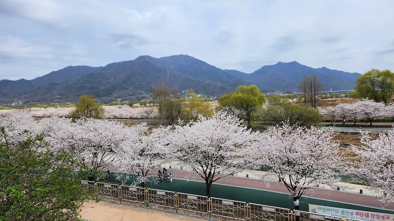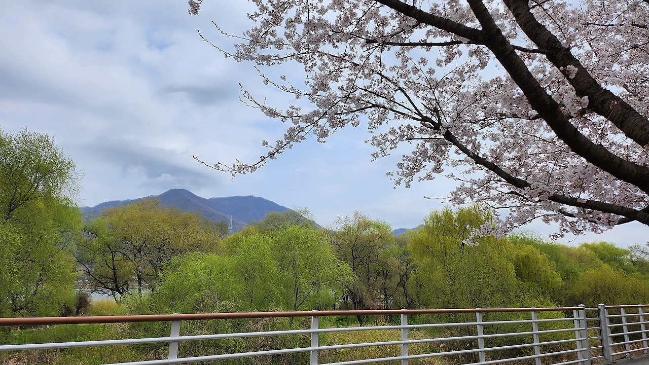 그러나 4월에 들어서자마자 며칠 안 돼서 창밖으로 내다보이는 아파트 단지의 가로수길이 갑자기 환해졌다. 이삼일 전만 해도 움츠리고 있던 벚꽃망울이 하룻밤 사이에 터져서 꽃이 활짝 핀 것이다. 앞산에도 하얀 벚꽃나무들이 드문드문 솜사탕처럼 박혀있다.