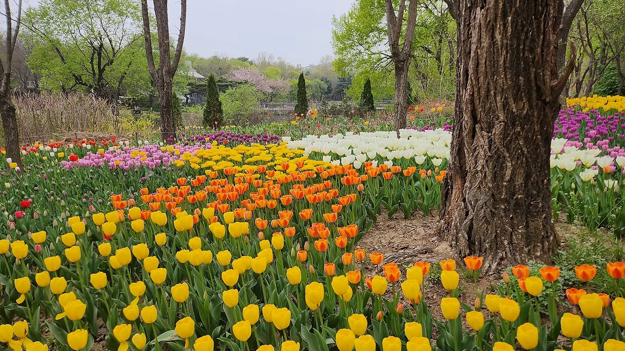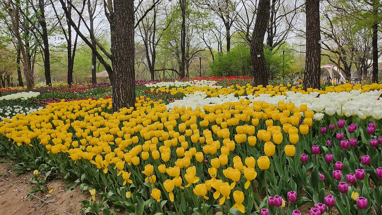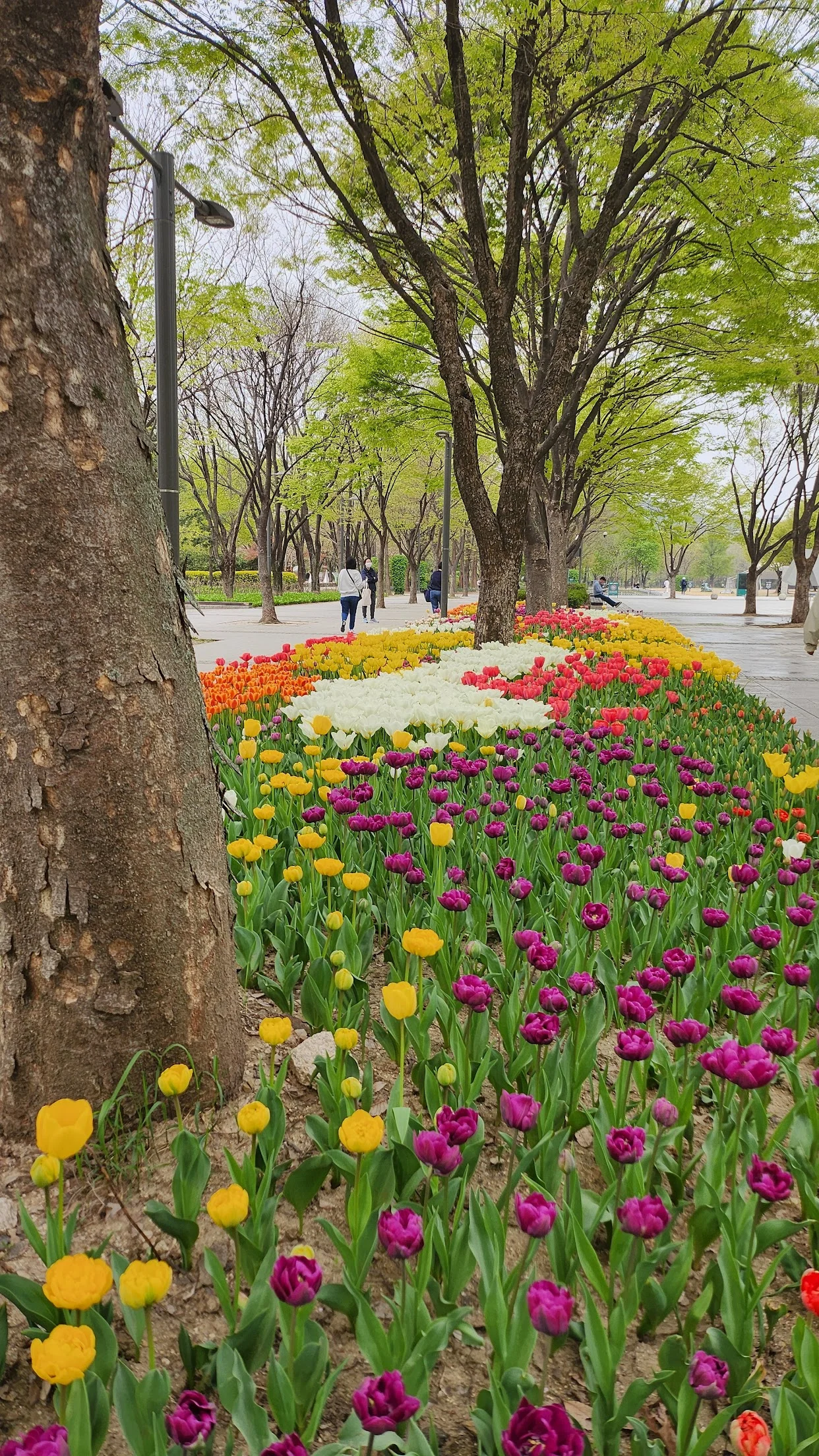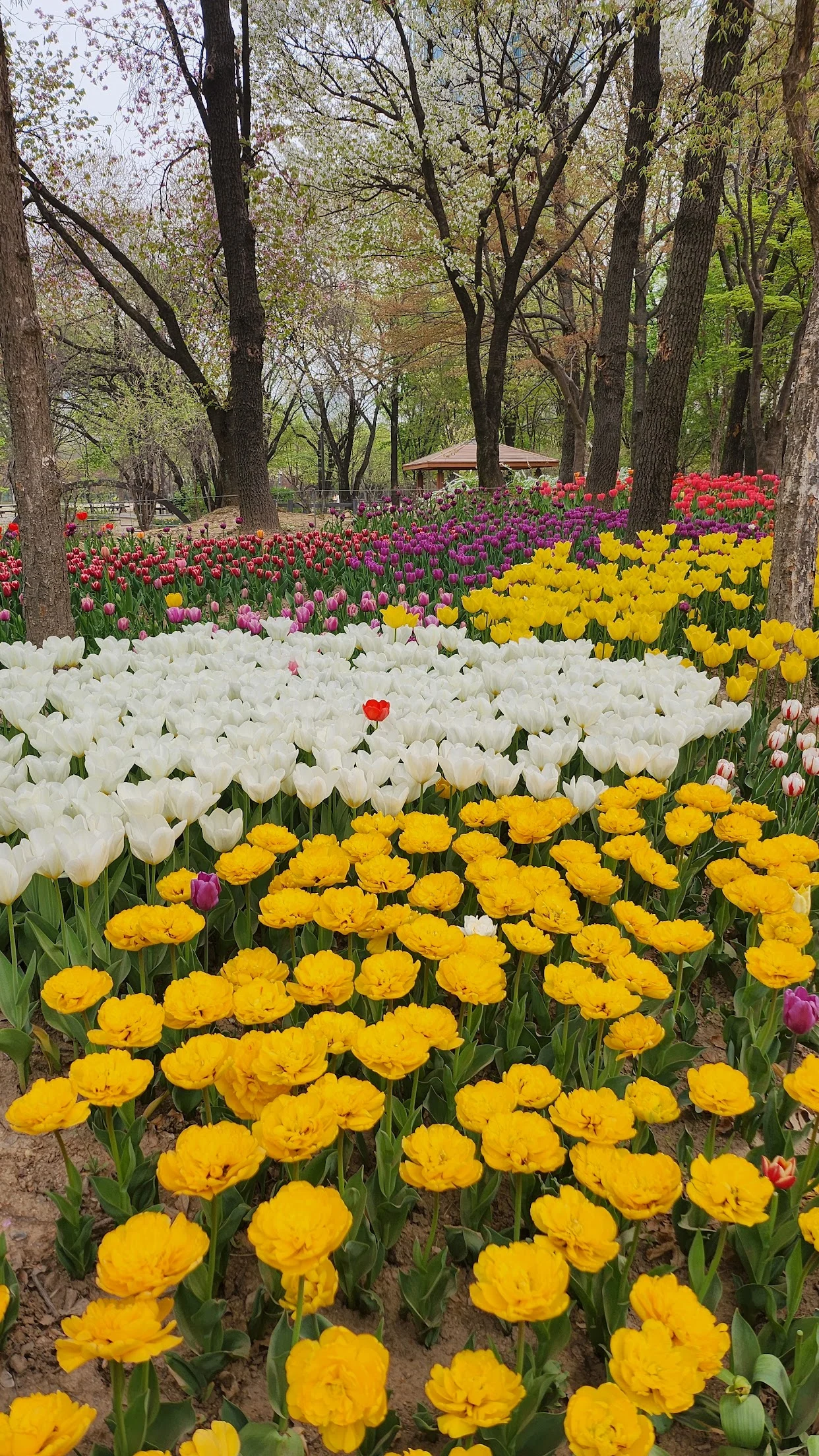 벚꽃도 지고 이제 무슨 꽃이 필 차례인가 하니 튤립이 생각난다. 예년에는 4월 중순에서 하순 사이에 튤립 구경을 하러 갔으므로 벌써 튤립이 피었을까 하고 궁금해할 때 성수동에 사는 한 친구가 서울숲 군마상 앞에 튤립이 피기 시작했다고 휴대폰으로 사진을 보내왔다. 50 퍼센트쯤 피었단다. 이삼일 전이었으니 오늘은 더 많이 피었겠지?