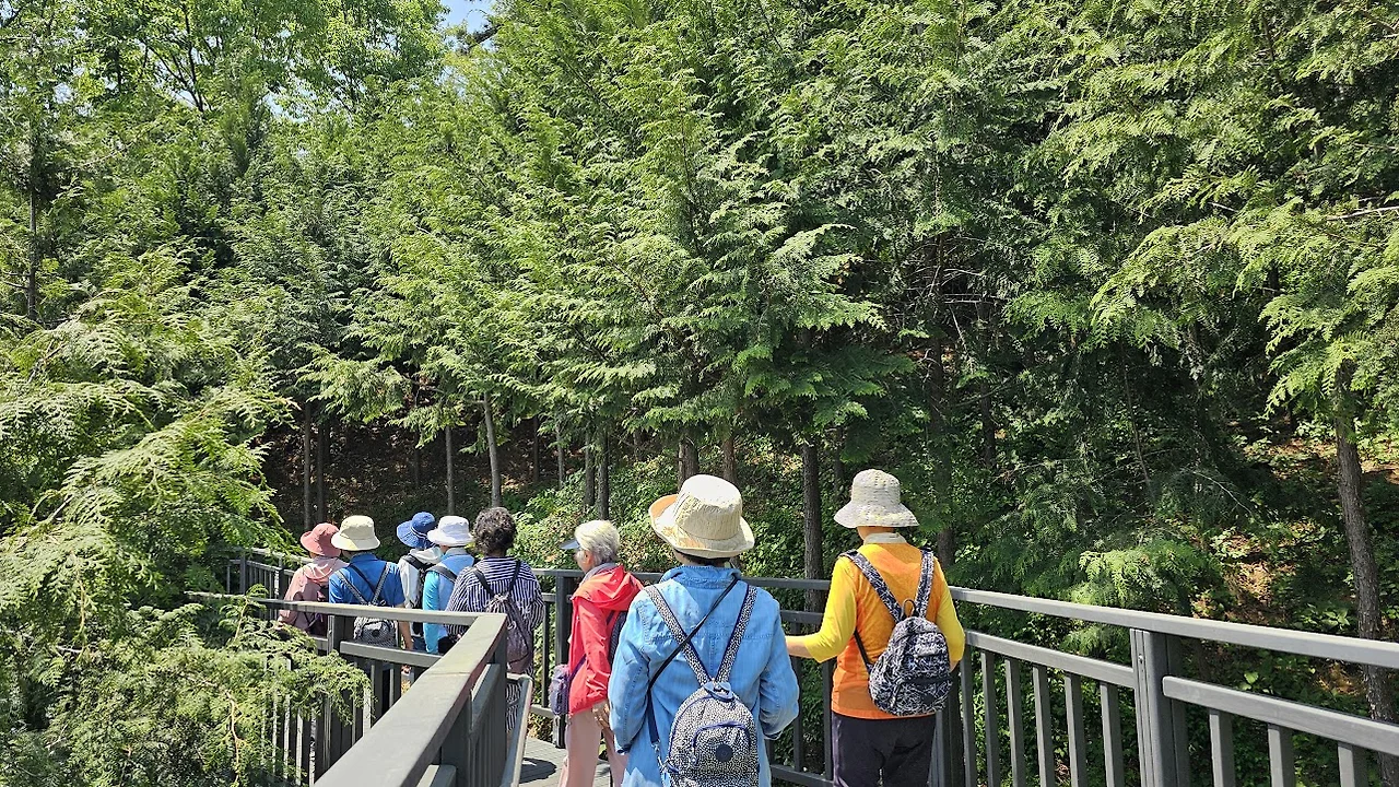 그렇게 멀리 가야 볼 수 있는 편백나무숲을 서울 가까이에서 볼 수 있고 오늘 우리가 그 숲길을 걸을 수도 있다니 운이 좋은 날이다. 편백나무숲 그늘에서 피톤치드 향을 흠뻑 들이마시고 아카시아꽃 향기가 실린 봄바람을 맞으며 걸으니 심신이 맑아지고 상쾌해진다.