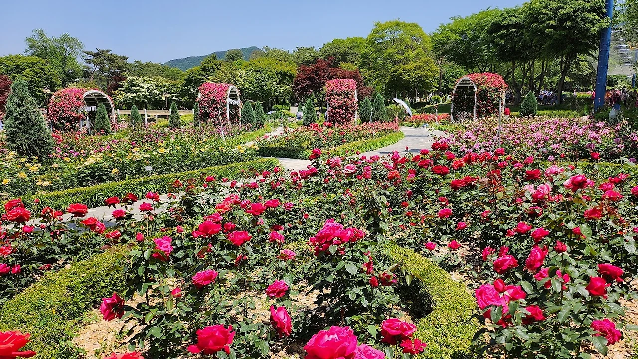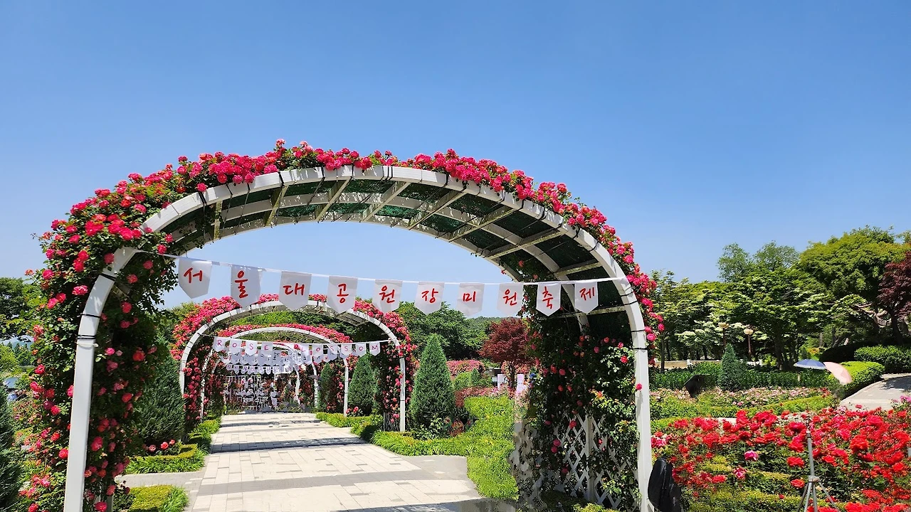 우리는 올해 처음 피는 장미를 감상하기 위해 과천의 서울대공원 장미원으로 간다.