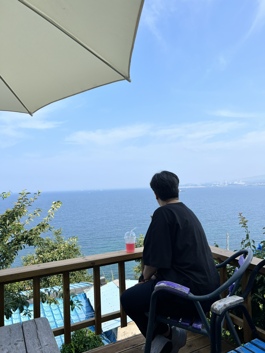 내 짝꿍은 나의 출장지로 와서 함께 서울로 가는 걸 좋아하거든. 이번에도 짝꿍은 휴가를 내고 기차를 타고 출장지로 왔지. 차를 빌렸어. 그 차로 묵호와 가까운 망상 해수욕장도 가고 채식 옵션이 가능한 중식당에도 가고 말이야. 멋진 해변 카페에서 한가한 시간도 보냈어. 3시간 30분을 알차게 보냈네.
