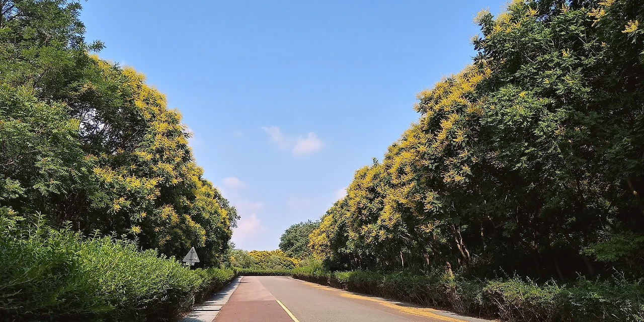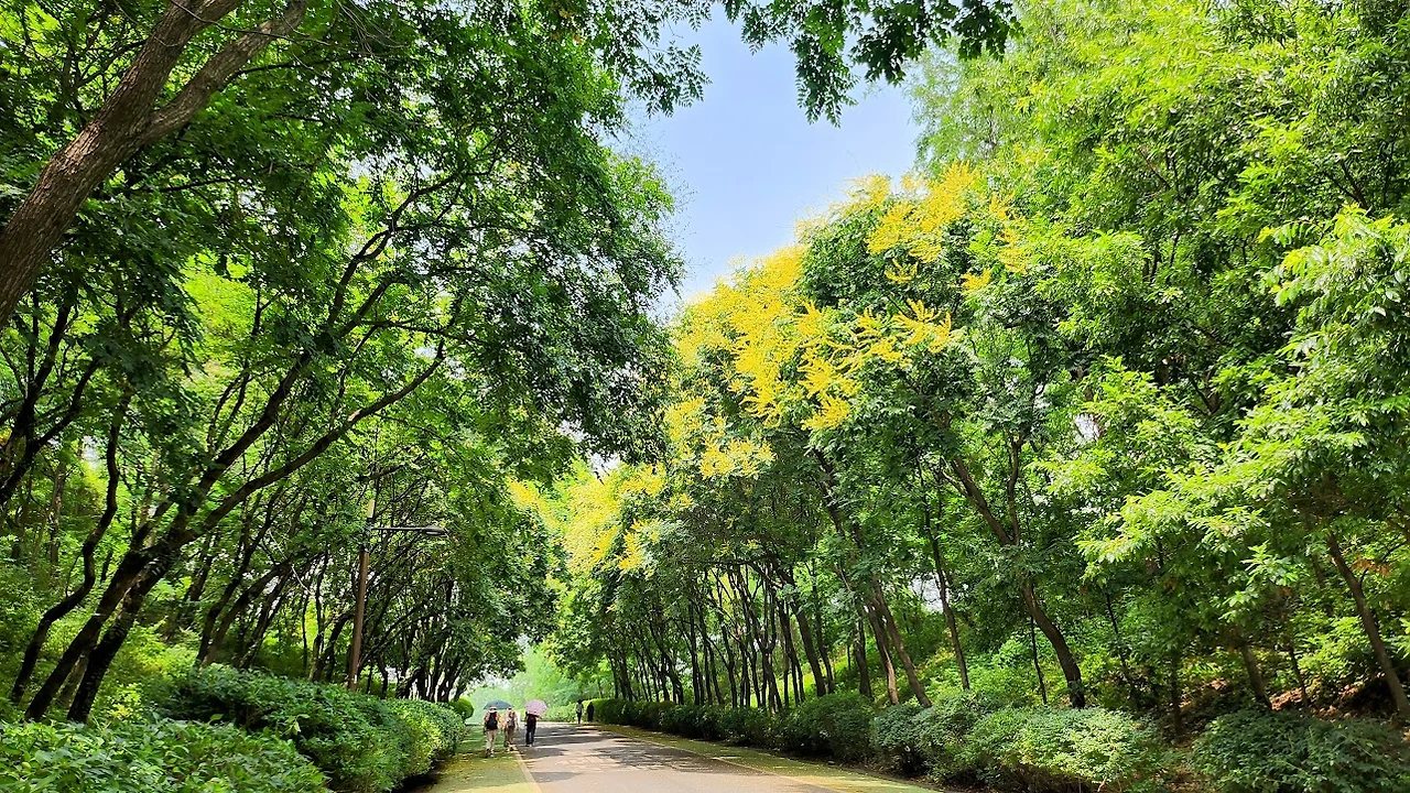 우연히 들어서게 된 모감주꽃길은 환상적이었다. 노을공원의 북측 둘레길은 난지순환로라고 하는데 이 길에는 온통 모감주나무가 가로수로 늘어서 있었다. 그때 마침 모감주꽃이 만개할 때여서 황금색 가로수길은 동화 속에서나 나올 것 같은 난생처음 보는 황홀한 길이었다.