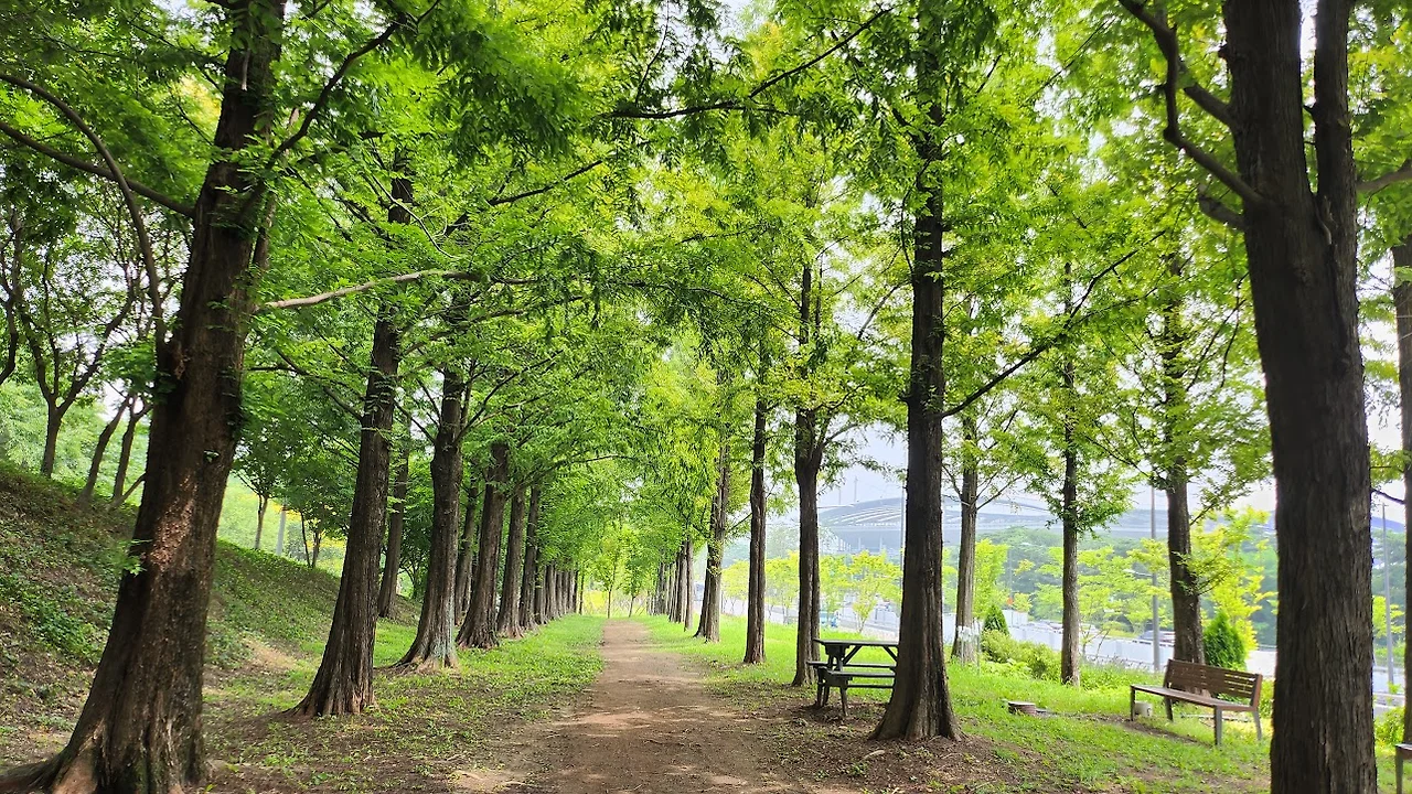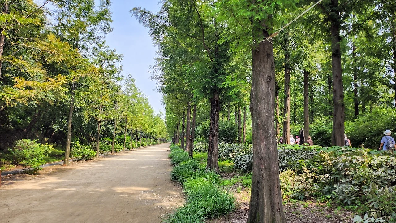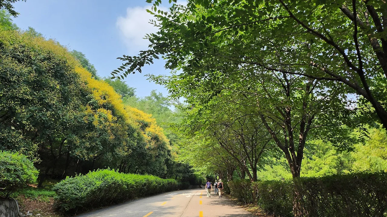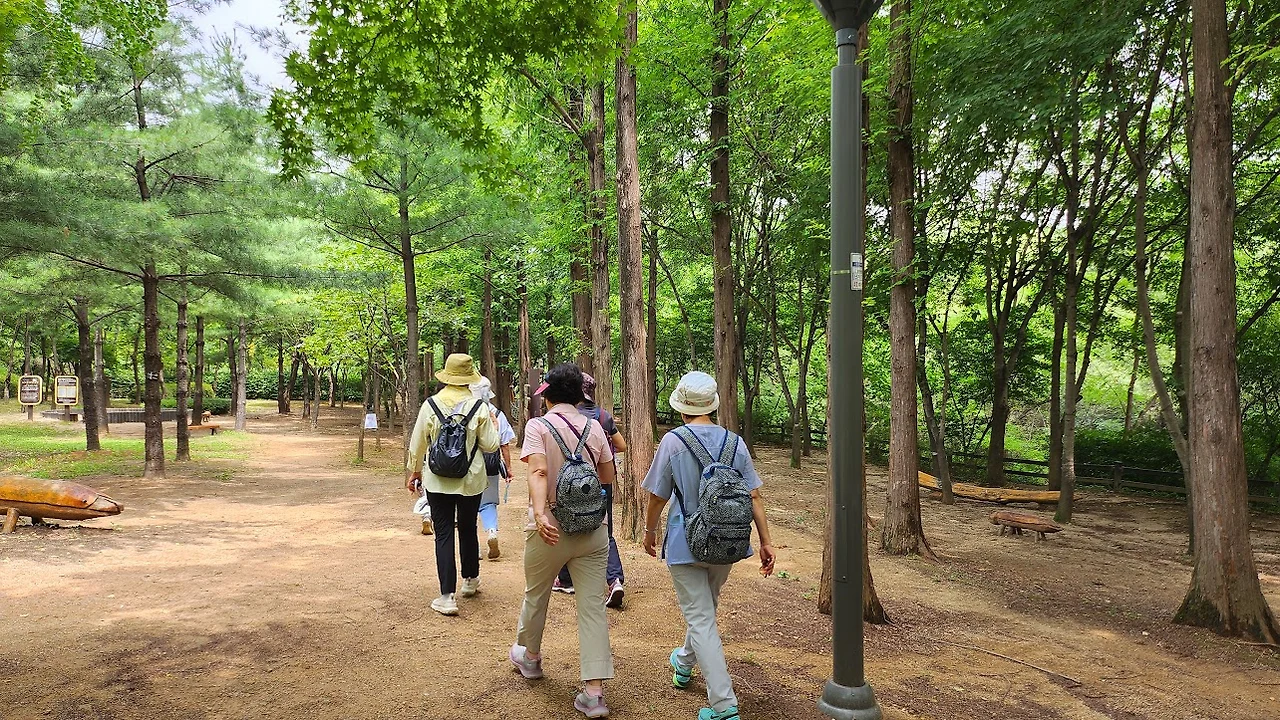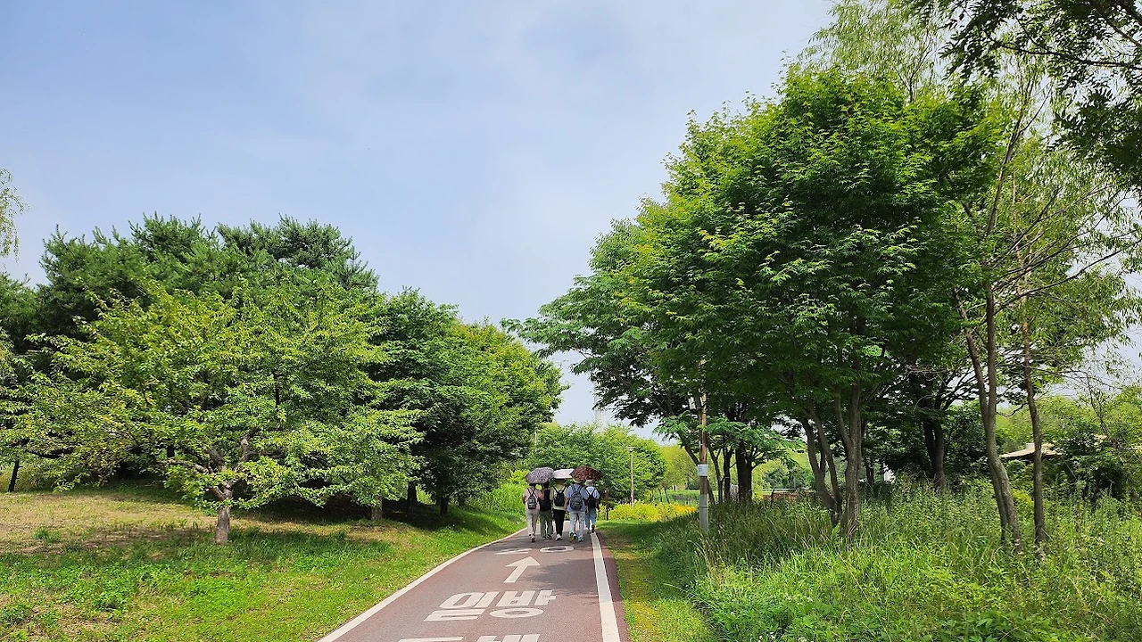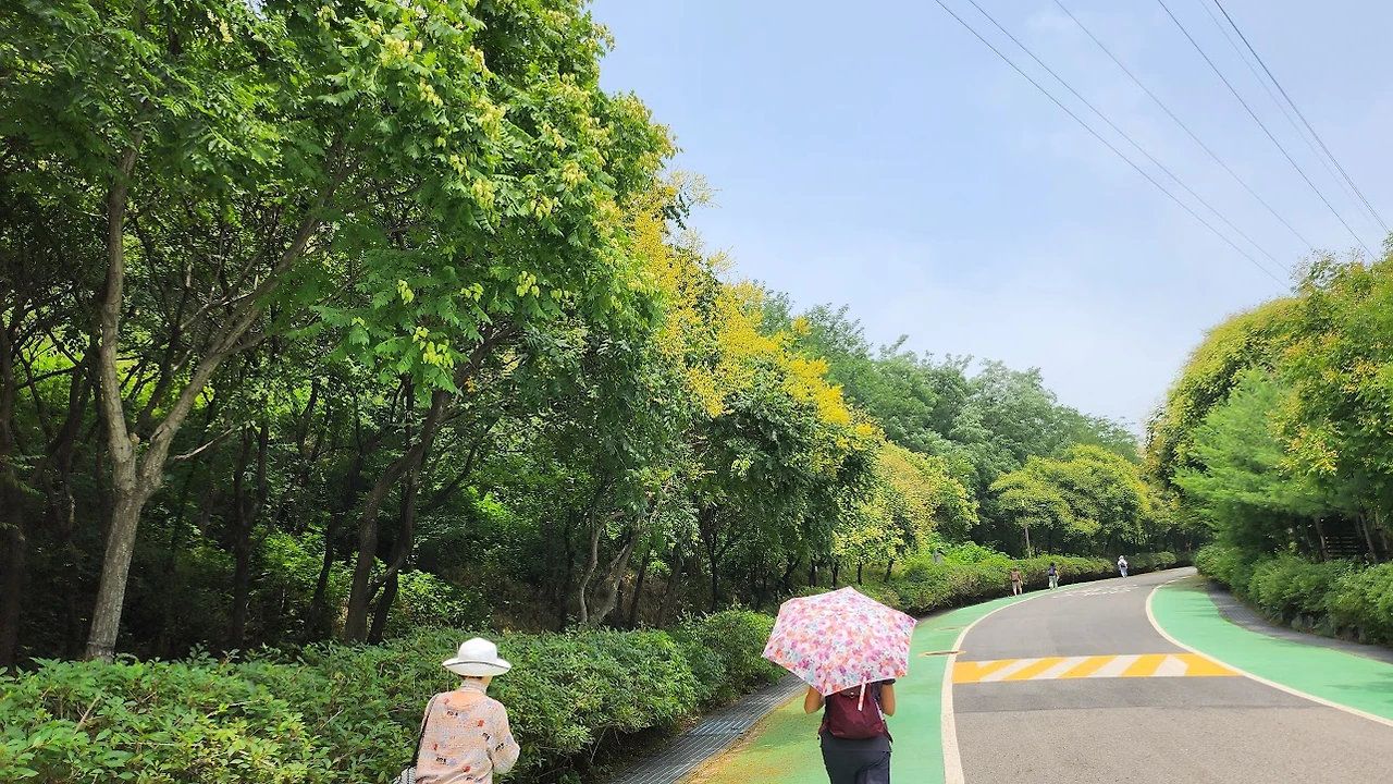 그런데 4년 전에 노을공원 북측 난지순환로를 통해 정상까지 올라가는 비교적 먼 길을 처음 걷느라고 모두 7월 더위를 무릅써야 했다. 모감주꽃길이 아름답기는 했지만 걷는 길에 쉼터가 거의 없었기 때문에 쉬지도 못하고 더위에 강행군했던 기억만 더 강하게 남았는지 그 후에 내가 노을공원 이야기를 꺼내기만 하면 친구들은 그 길이 덥고 힘들었다고 고개를 절레절레 흔들고는 했다.