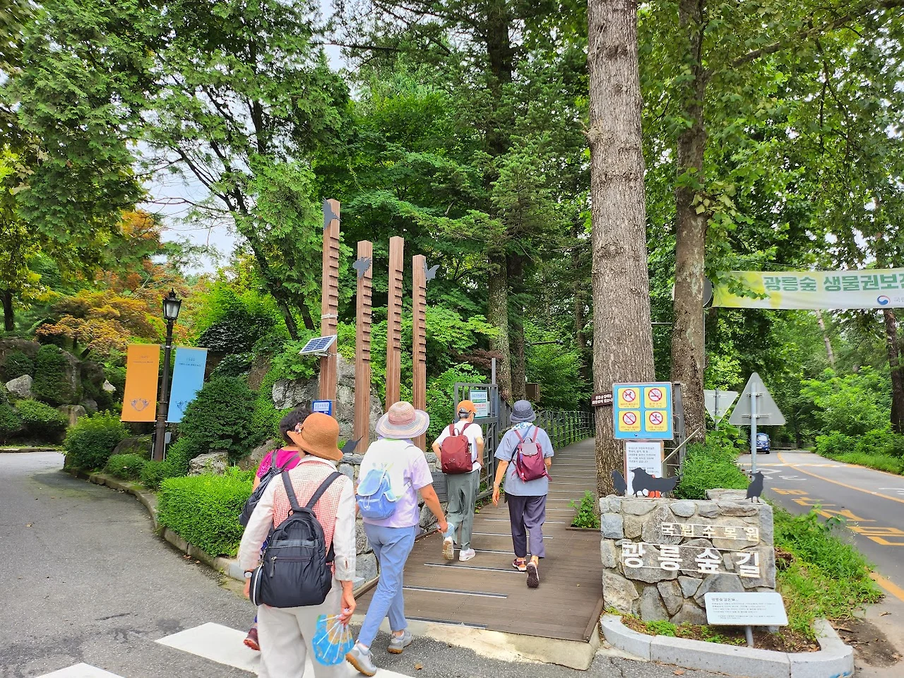 이 숲길은 국립수목원으로 봉선사천을 따라가는 광릉수목원로 옆으로 만들어진 보행자도로인데 데크길로 이루어져 걷기에 매우 편하다.