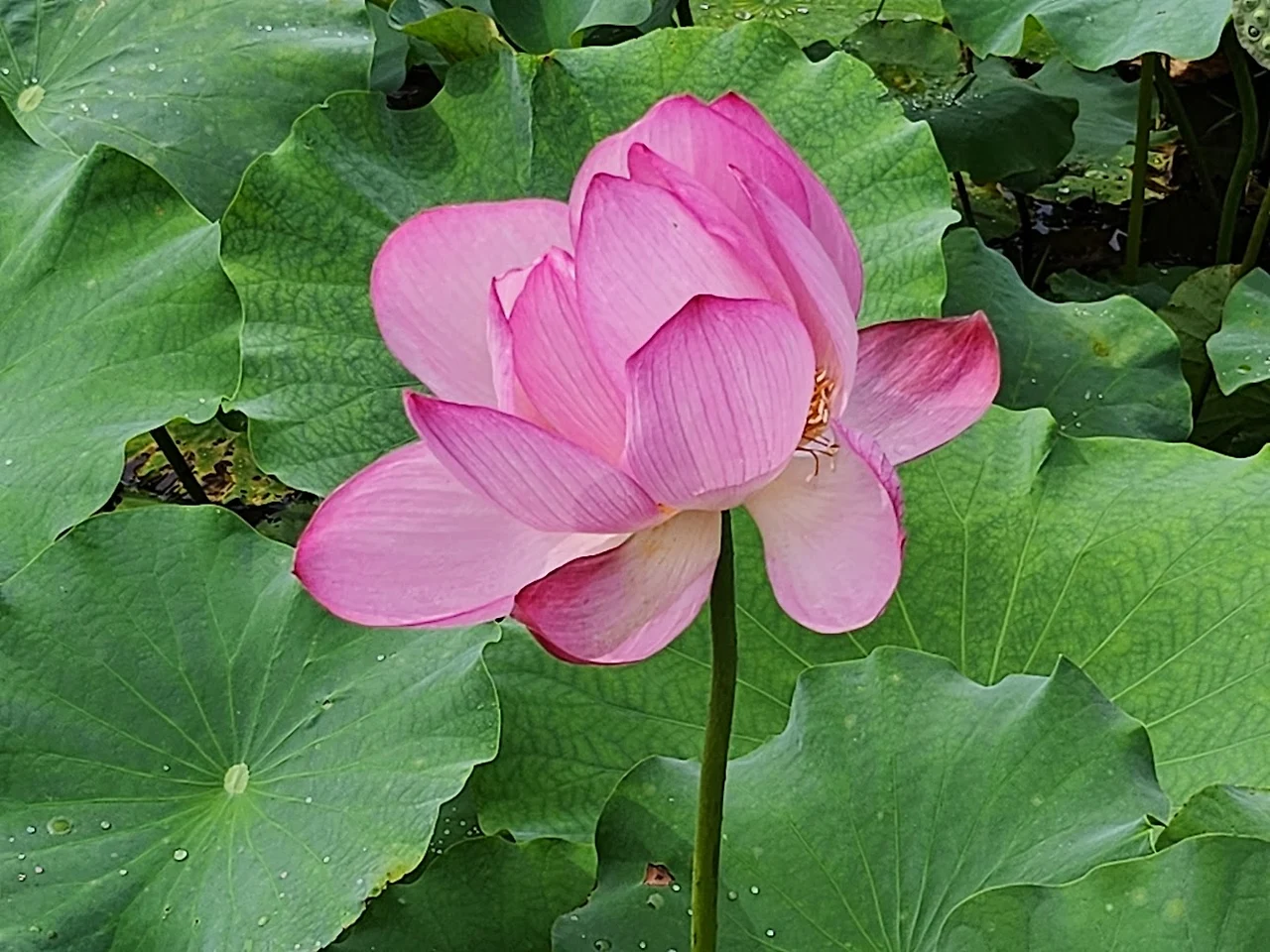 보통 사찰 입구의 일주문과는 비교가 안 될 만큼 커다란 산문에 한글로 “운악산봉선사”라고 현판이 걸려있다. 산문을 지나고 주차장을 지나니 약간 높은 곳에 연못이 나오고 연밭이 펼쳐진다. 연못 둘레에는 청사초롱이 매달려 있어 축제분위기를 내고 있다. 연지의 규모는 그리 크지 않고 피어있는 연꽃도 많지는 않다. 연꽃이 일찍 핀 건지? 아니면 아직 덜 핀 건지? 어쨌든 지금 피어있는 희고 붉은 연꽃은 크고 풍성하고 흠잡을 데 없이 아름답다.