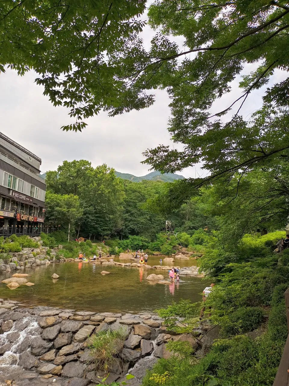 60년전에도 이랬으리라. 다만 달라진 것은 그때 내 부모는 아이가 다섯이었으니 정말 복잡했을것이다. 지금은 한두명의 아이가 엄마 아빠랑 놀고 있다. 주변 풍경은 너무 달라졌다. 개천가 양 옆길에는 카페와 음식점이 즐비하고 안양천 부근에는 고층아파트들이 빽빽히 서있다. 너무나 달라지고 기대했던 풍경이 아니어서 약간 실망했지만 예전에도 있었을 벚나무길과 계곡의 넓고 시원한 바위들과 그위로 쉬임없이 관악산에서내려오는 개울물은 60년전과 같이 변치않고 흐를 것이기에 옛 모습을 조금이라도 기억할수 있어 섭섭한 마음이 덜어졌다.