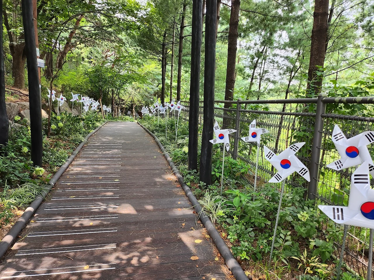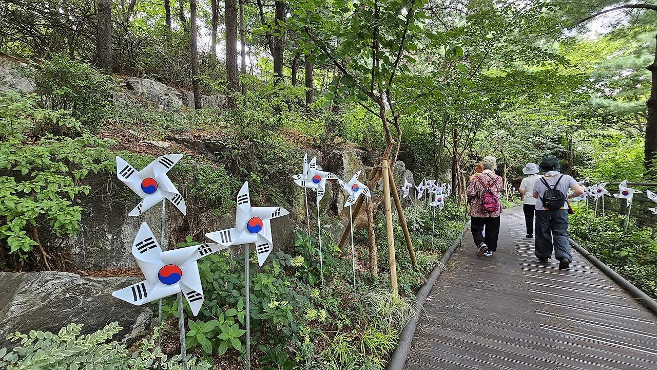 아치형 입구에 들어서니 길 양옆에 태극기 문양을 넣은 작은 바람개비들이 줄지어 돌며 우리를 환영하는 듯해서 오늘이 광복절임을 다시 한번 상기한다.