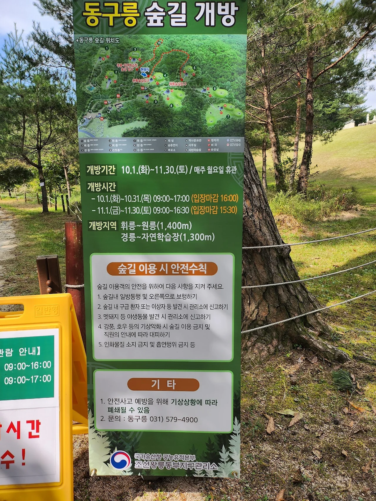 현수막에는 이 숲길이 앞에서 말했듯이 10월부터 11월까지 개방된다고 적혀 있다. 안내도에 의하면 이 숲길을 따라 끝까지 가면 영조의 원릉에 이른다.