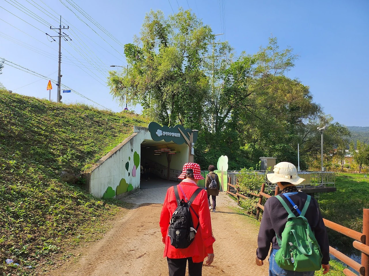 안내 대로 길을 따라가서 고속도로 아래 토끼굴도 통과하고 코스모스길이라는 이름의 길을 걸어가다가 코스모스길 14번 길을 계속 따라가니 강변북로 아래로 또 한 번의 토끼굴 진입로가 나온다. 이 길은 지난여름에 우리가 수국을 보러 가면서 통과해 본 적 있다.