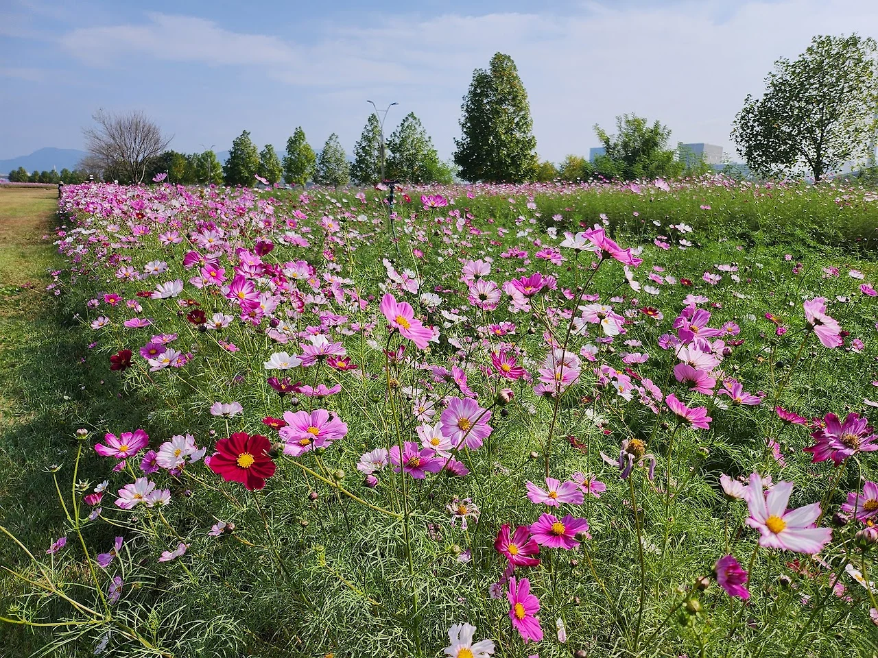웬만큼 돌아보다가 아쉽지만 코스모스 꽃밭을 두고 떠나야 한다. 점심 때도 가까워졌으니 말이다. 이럴 땐 도시락이 좋은데 코스모스 옆에 앉아서 먹을 자리가 없으니 그것도 아쉽다. 코스모스 단지를 돌아 나오는 길에는 반대편에서 오전 보다 더 많은 사람들이 꽃구경하러 줄지어 들어오고 있다. 오늘은 평일인데도 이렇게 사람이 많은데 주말에는 얼마나 복잡할까? 과연 구리 한강 공원의 코스모스축제는 소문이 날 만하고 가을에는 꼭 와 볼만한 곳이다.