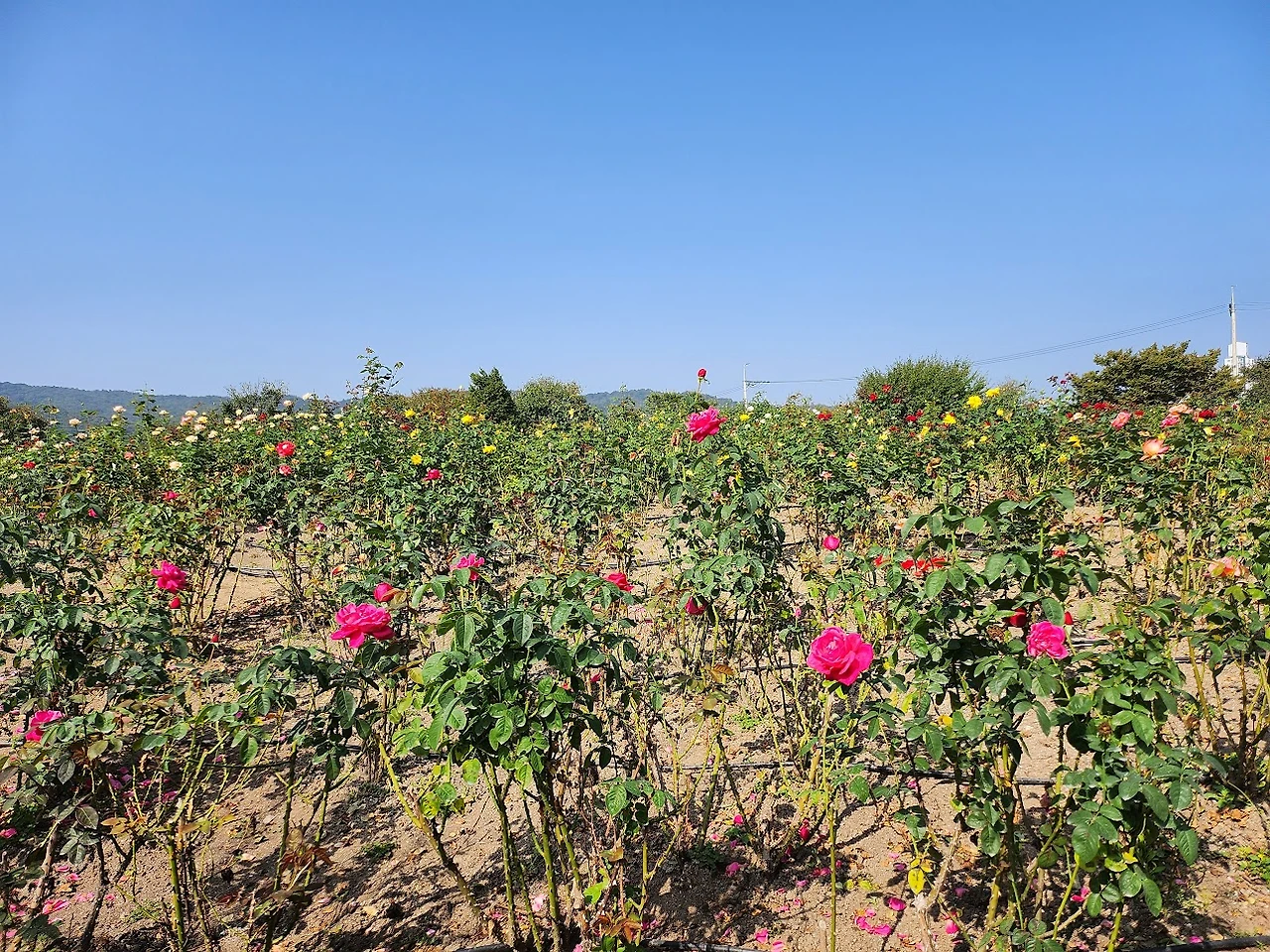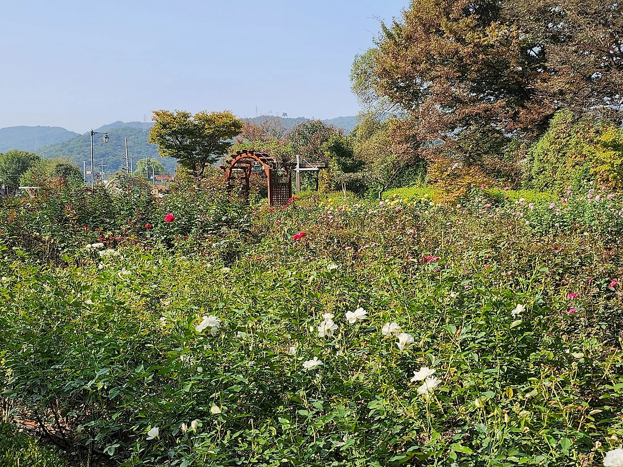 이 공원에는 장미원이 두 곳이나 있는데 아직도 생생한 장미들이 꽤 많이 남아 피어있는 것을 보니 정성을 많이 들여 가꾸었나 보다. 장미원에서 보는 호수와 서울 쪽으로 아차산과 멀리 하남 지역 산들의 부드러운 능선들이 어울려 이루는 풍경이 정말 한 폭의 그림 같다.