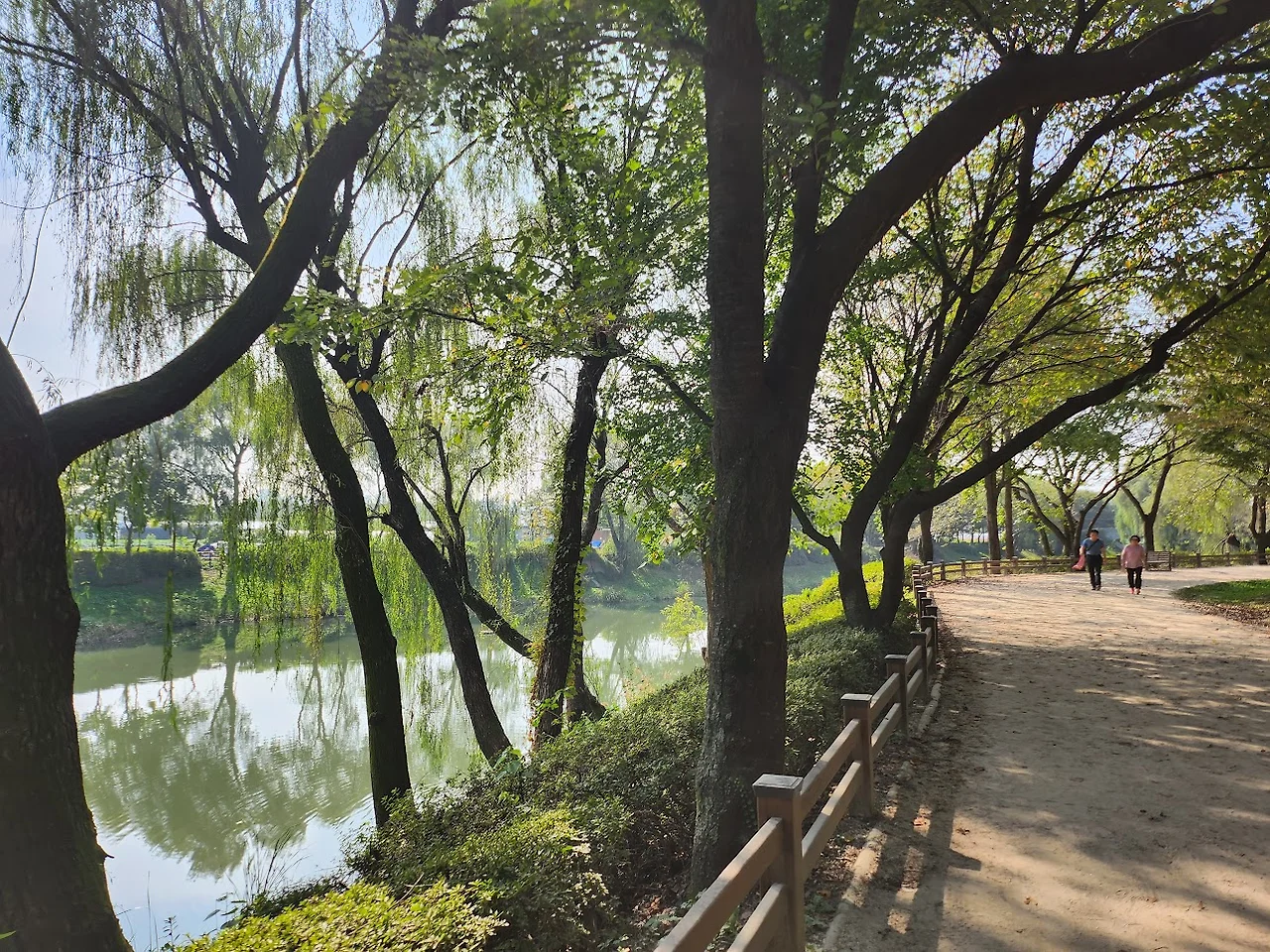장자못은 하천처럼 좁고 길게 이어져서 남쪽으로 한강과 연결된다. 호수가를 따라 산책로와 공원이 잘 조성되어 있는데 산책로는 벚나무 길로 그늘이 매우 아름답다. 내년에 벚꽃 필 때는 이 벚꽃길도 또 걸어봐야겠다.