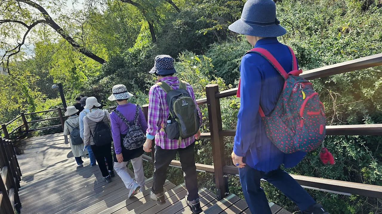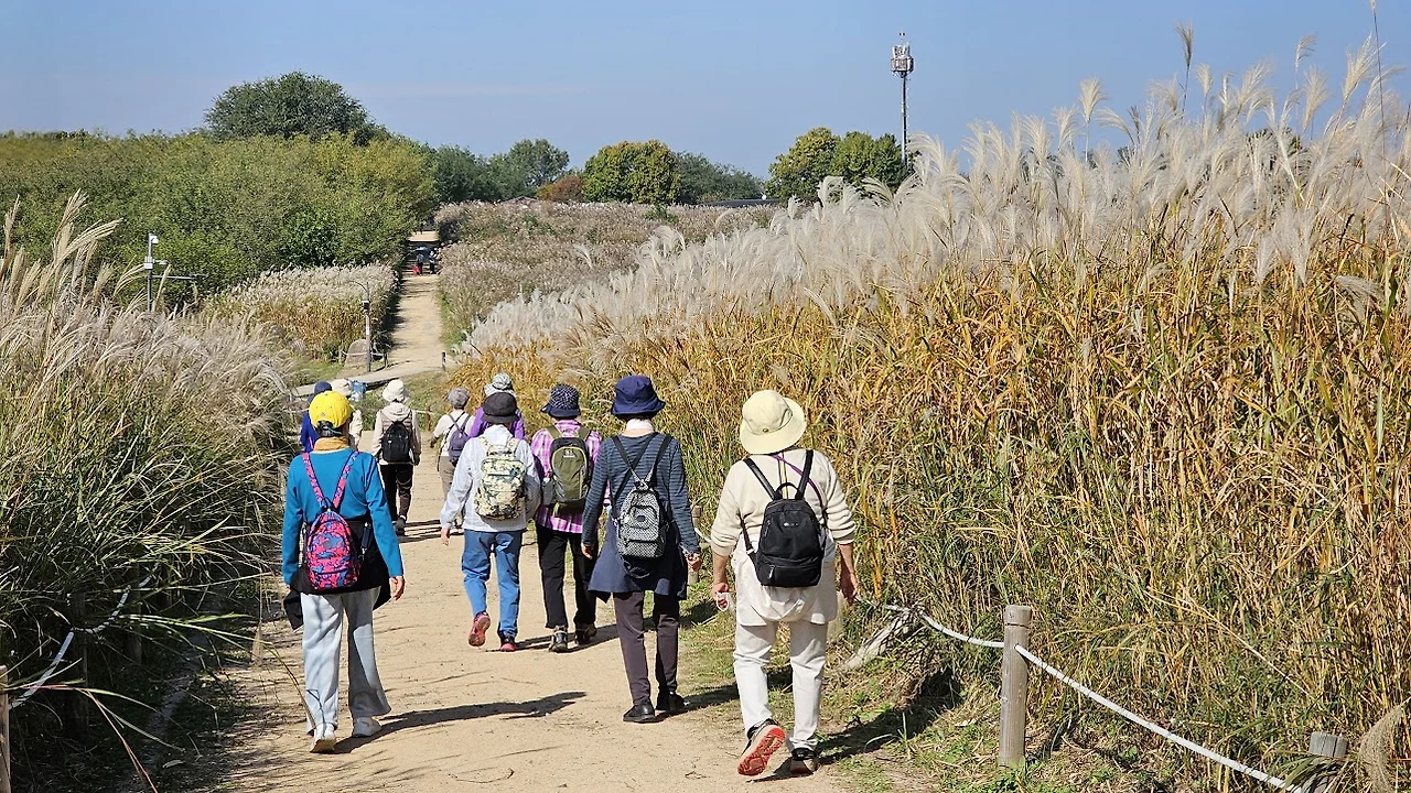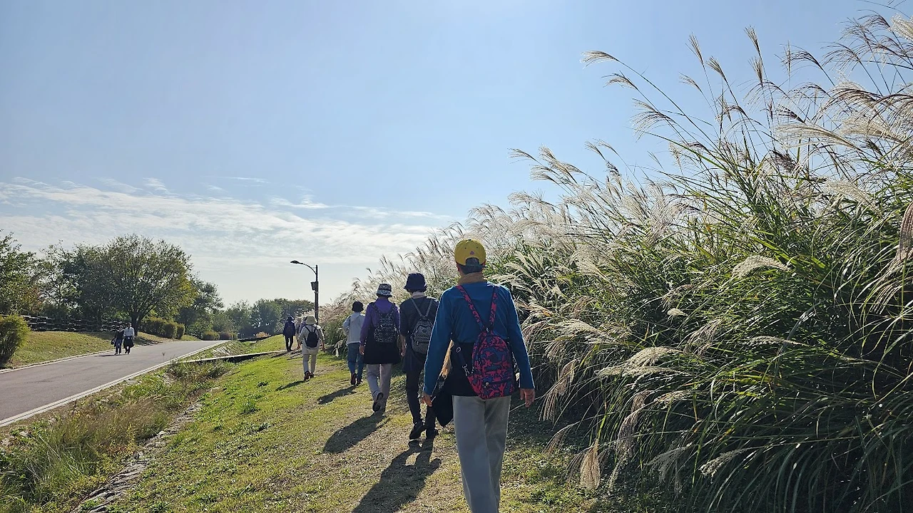 오늘은 6 호선 월드컵경기장역 1번 출구에서 열한 명이 모였다. 출구 앞은 예상한 대로 억새 구경하러 온 사람들로 북적이고 있다.
