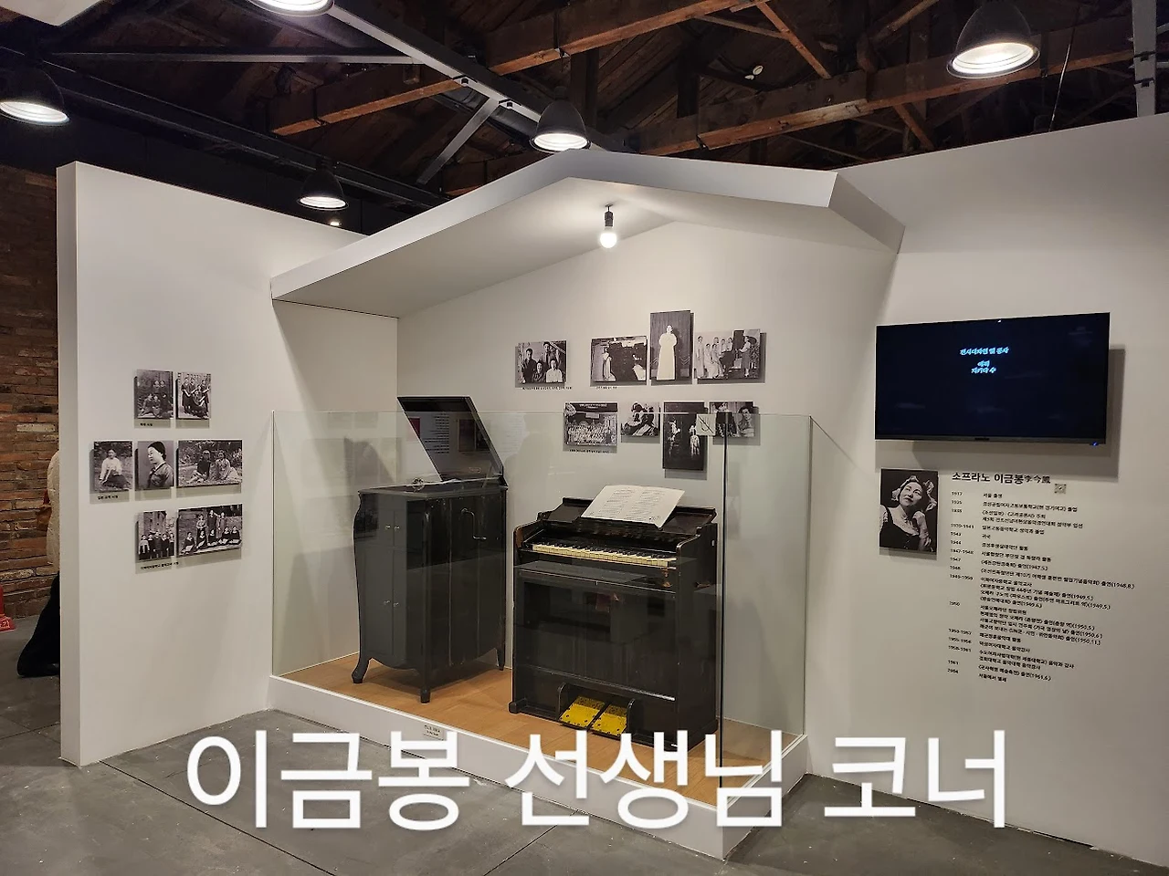 이금봉 어머니 전시코너에는 노래하는 음성이 녹음된 다큐 영상과 함께 여고시절 사진에서부터 소프라노 가수로서, 음악교사와 대학 강사로 한창 활약하시던 때의 사진들, 그리고 사용하시던 풍금과 오래된 전축도 전시되어 있어 감탄이 절로 나온다. 어떤 친구는 여중 1학년 때 경숙이 어머니가 같은 반 교실에 오셔서 노래를 불러 주신 것이 기억난다고 한다.