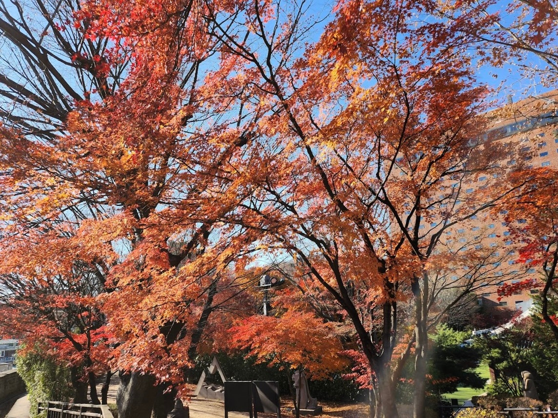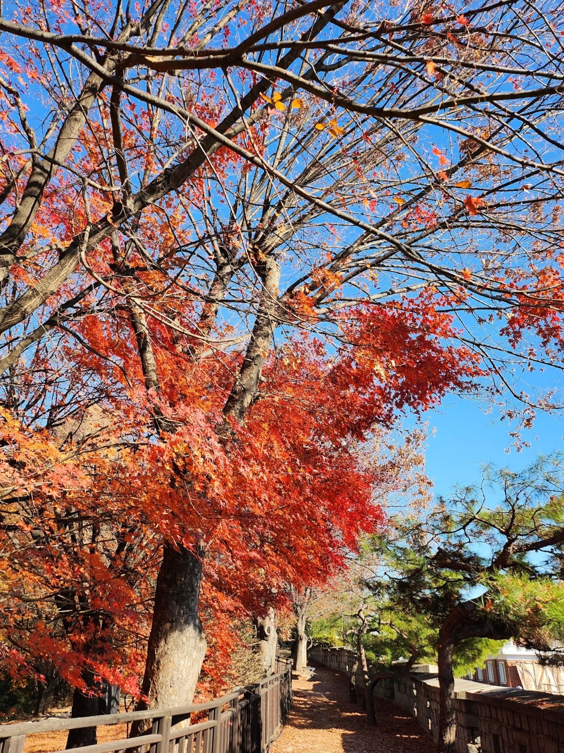 혹시나? 단풍이 남아 있을까? 했더니 역시나! 기대를 저버리지 않고 화려한 단풍이 아직 남아 있다! 별로 기대하지 않았던 12월 단풍을 만나니 더욱 반갑고 밝은 햇빛을 투과하는 단풍잎 색깔이 더욱 고와 보인다. 일주일 전에 왔었더라면 절정기의 단풍을 볼 수 있었을 텐데.. 아쉬움도 약간 있지만 쨍하게 높고 파란 하늘이 올해의 마지막 단풍을 빛내주고 있어 이 정도에서 만족하기로 한다.