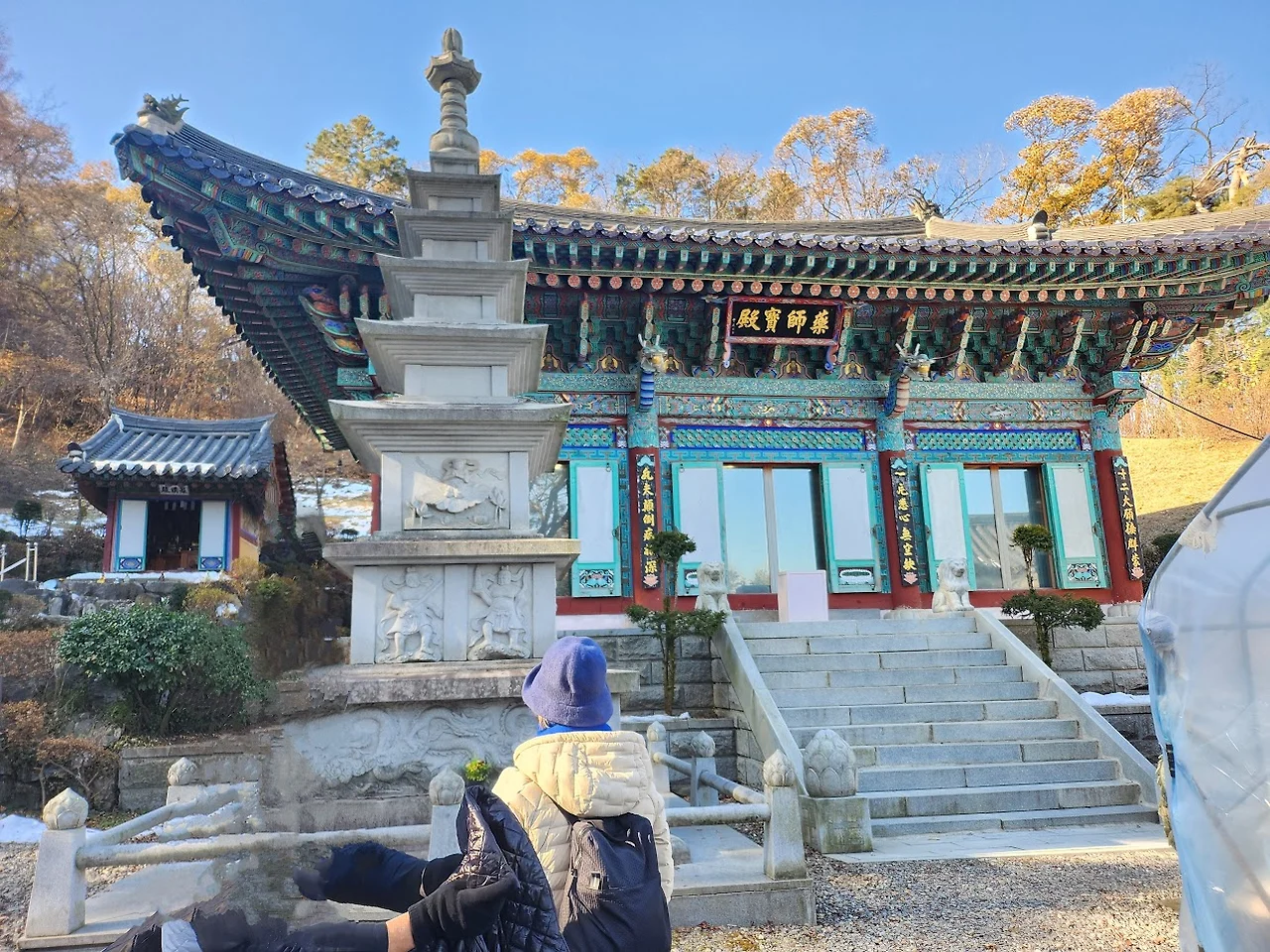 갈림길에서 불국사 방향으로 올라가는 표지판이 보인다. 서울에도 불국사가? 하고 궁금했었는데 오늘에서야 가보게 된다. 경주 불국사가 아니라 서울 불국사는 고려 말기 공민왕 때 세워졌으나 불국사라는 이름을 얻은 것은 조선의 고종 때라고 한다. 그런데 서울 불국사는 대모산 높은 곳에 자리 잡고 있어서 몇몇 친구는 힘들어서 못 올라가겠다고 중간에 앉아 쉬기로 하고 다른 친구들은 절 구경을 하러 좀 더 올라간다. 중심 법당은 약사여래를 모셨다고 약사전이라고 부르는 아담한 사찰이다. 약사전 아래 마당에는 수백 년은 된 것 같은 오래된 고목이 한그루가 서 있는데 그 옆에 사무실 같은 건물이 아주 바짝 붙어 있어 아무래도 고목나무를 보기가 괴롭다. 아무리 지대가 협소하다 해도 너무 답답해 보인다. 그래도 그 신령스러워 보이는 고목을 한번 안아 보겠다고 몇몇 친구들은 나무를 껴안고 여학생들처럼 사진도 찍는다.