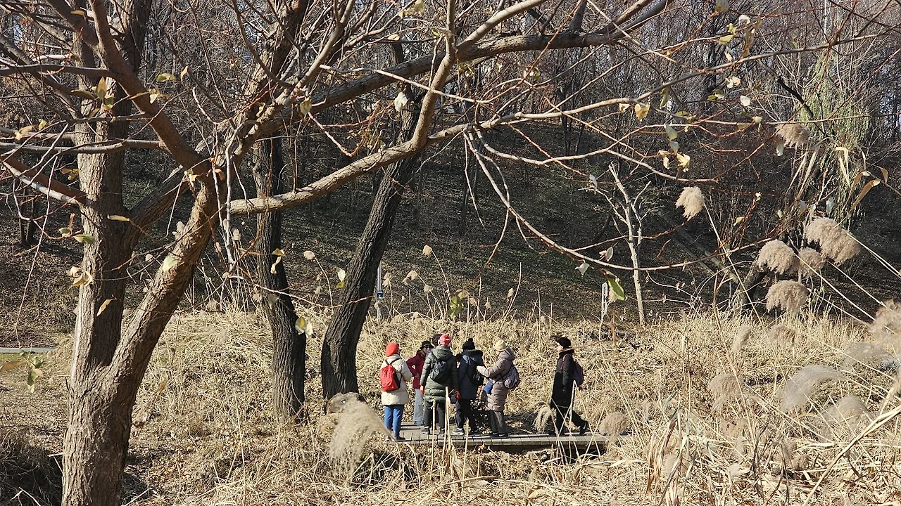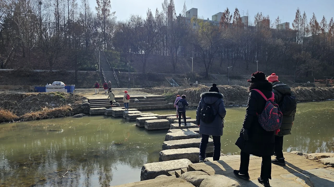 도곡역에서 양재천 쪽으로 늘벗공원이라는 근린공원을 지나니 곧 양재천 둑길에 이른다. 둑길에서 동쪽 탄천 방향으로 걷다가 둑 아래로 내려가 양지바른 하천변의 자전거길 옆 보행로로 걷는다. 윗길인 양재천로는 가을단풍로라는 이름도 붙어 있는데 단풍철에 왔으면 아름다웠을 것 같다. 봄에는 이곳이 벚꽃길로도 유명하다.