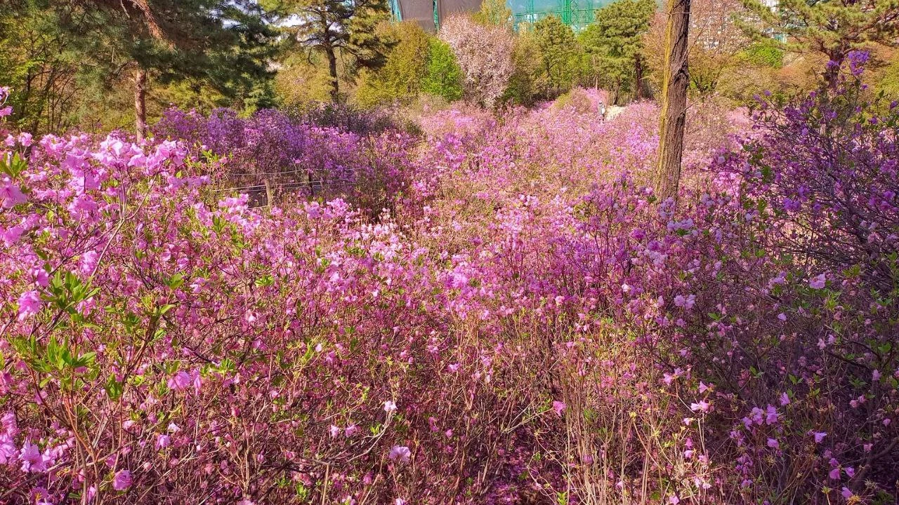 북한산과 청계산 진달래능선이 유명했지만 우리는 청계산에 자주 가서 진달래를 즐겼다. 이제는 청계산도 오르기 힘들다는 친구들이 생겼다. 그러던 차에 눈에 뜨인 것이 서울 근교 원미산에서 열리는 진달래 축제였다. 등산로 초입에 진달래공원이 드넓게 펼쳐져 있어 힘들게 높은 산을 오르지 않아도 진달래를 실컷 보고 올 수 있었다. 그다음에는 용산 박물관 정원을 걸으며 오솔길의 진달래를 보고 탄성을 지르기도 했다.