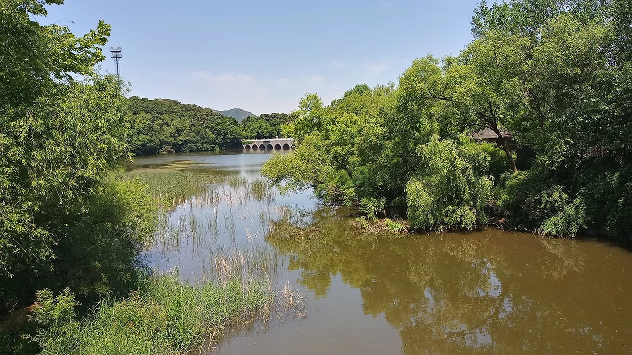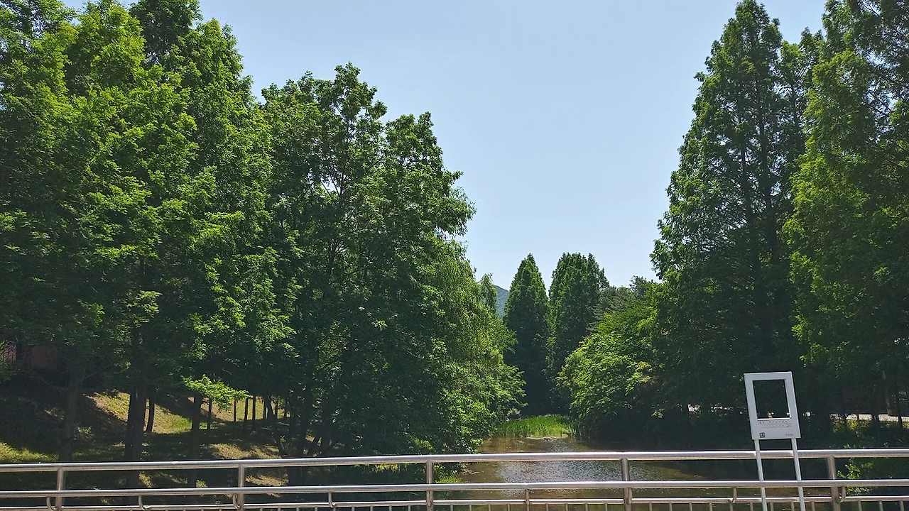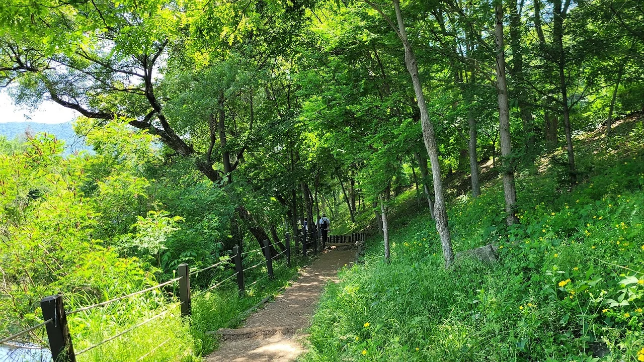 입구에서 호수 남쪽 오른편으로 가다 보면 다리가 나오고 이 다리를 건너기 직전에 우측으로 "호숫가숲길"이라고 유혹적인 이정표가 보이고 숲 속으로 올라가는 계단이 보인다.