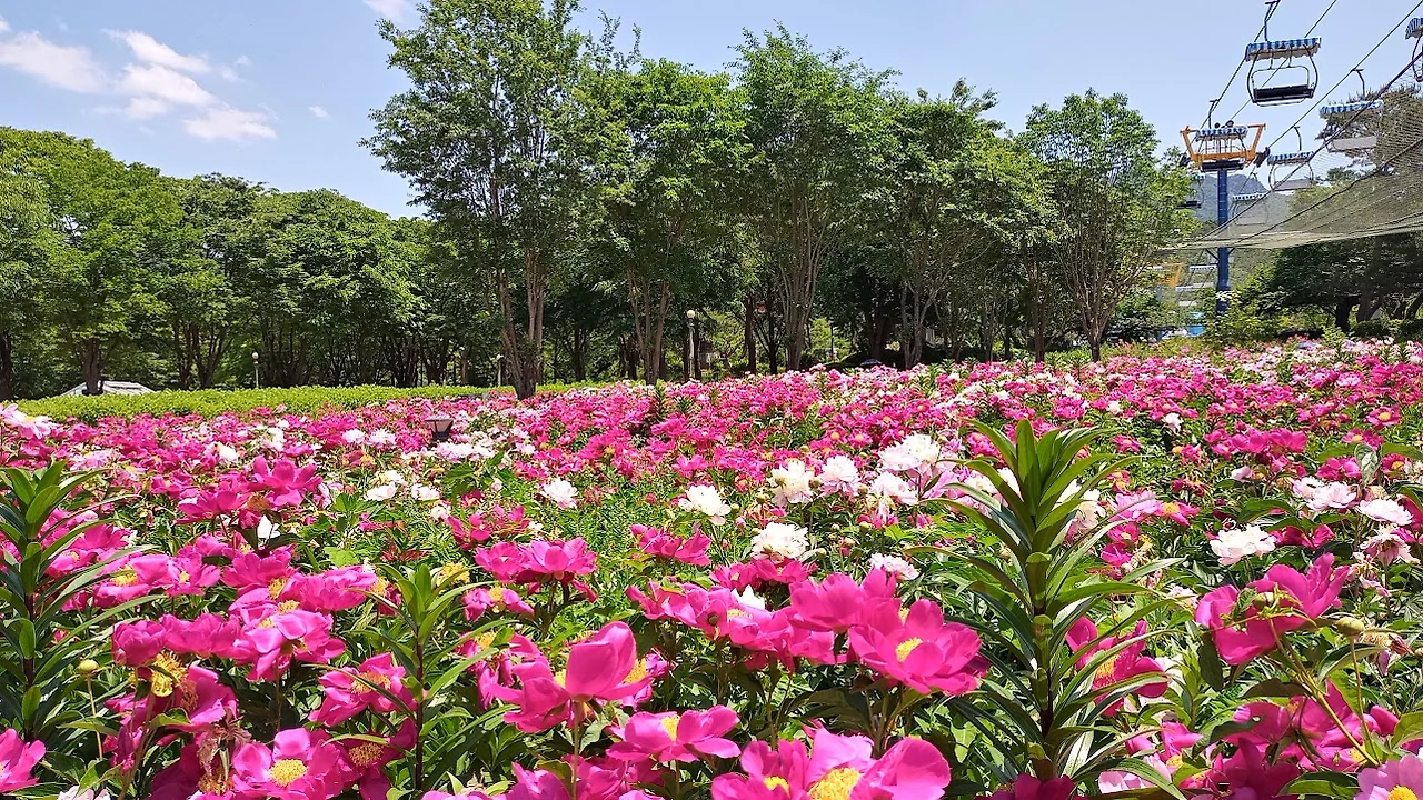 모란과 작약은 장미보다 개화기가 일러 작약은 이미 절정기를 지나서 얼마 전까지만 해도 화려했을 꽃잎들이 힘없이 빛을 잃어가며 새로 피어나 도발적으로 아름다움을 뽐내기 시작한 장미들에게 관람객의 시선을 빼앗기고 있다. 장미는 이제부터 피기 시작하면 계속 피고 지고 하며 늦여름까지 한동안 아름다운 꽃을 볼 수 있지만 만개한 작약은 내년 봄에나 와야 볼 수 있을 테니 시들어가는 작약꽃을 보는 마음이 왠지 허전하다.