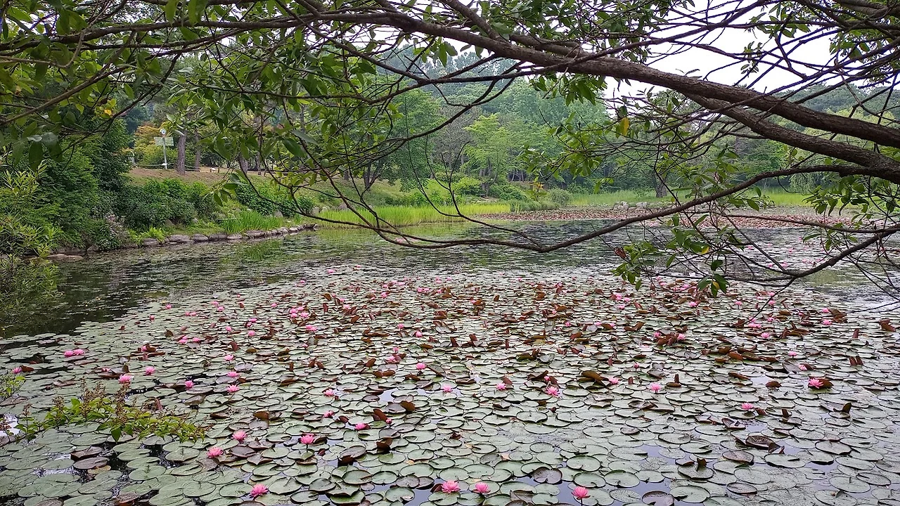 추천관람로를 따라 걸어가다 만난 수생식물원 연못에는 수련꽃이 한창 피어있고 산수국도 피어 있으며 단풍나무숲에는 여러 가지 종류의 단풍나무들이 많이 심겨 있다.