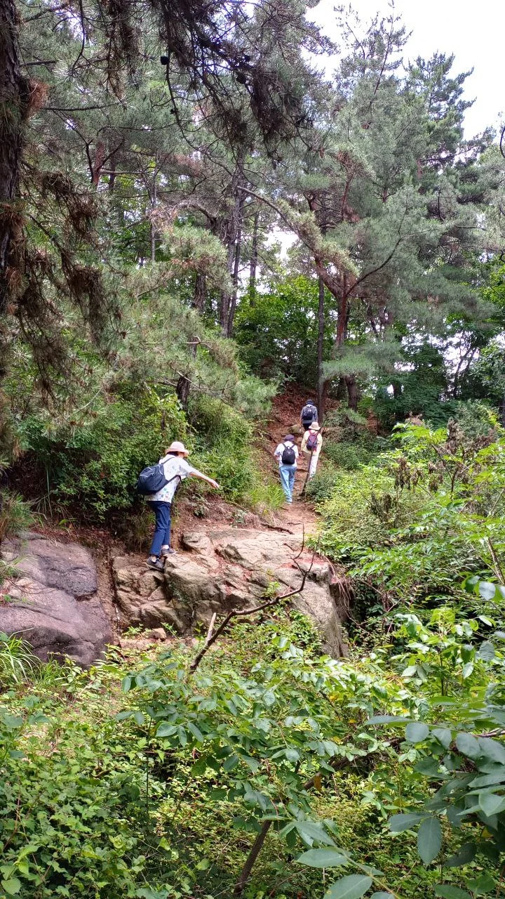 시원한 폭포소리를 들으며 산책길을 따라 올라가니 중랑둘레길이라는 팻말이 나오고 곧 숲 속 오솔길로 이어진다. 좀 더 올라가면 용마정이 있다고 화살표가 나오지만 오르는 길이 만만치 않다. 계단도 많을 뿐 아니라 계단이 없는 길은 일반적인 산길로 모래와 나무뿌리로 덮여 있다. 이 경사진 길을 그럭저럭 올라가기는 하겠으나 내려올 일이 안심이 안 돼서 아깝지만 용마정 올라가서 전망 보는 것은 포기한다.