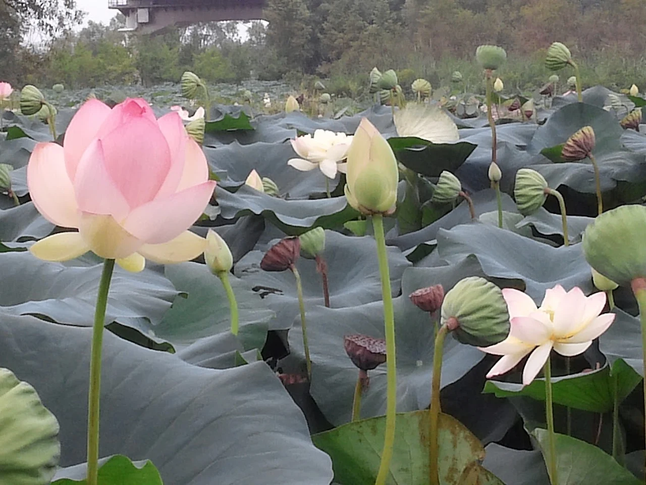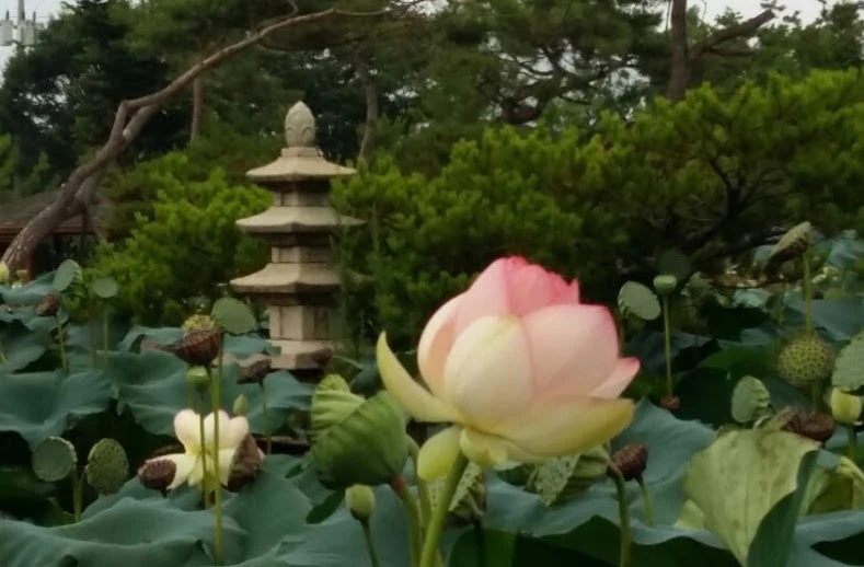장독대분수를 지나 처음 만난 페리기념연못에는 활짝 핀 연꽃이 별로 많이 보이지 않는다. 우아하고 품위 있는 꽃송이가 몇 송이만 남아 있다. 이미 꽃이 졌는지 꽃 떨어진 자리에 연밥이 달려있다. 이 연못의 꽃이 제일 먼저 개화하는 곳인가 보다.