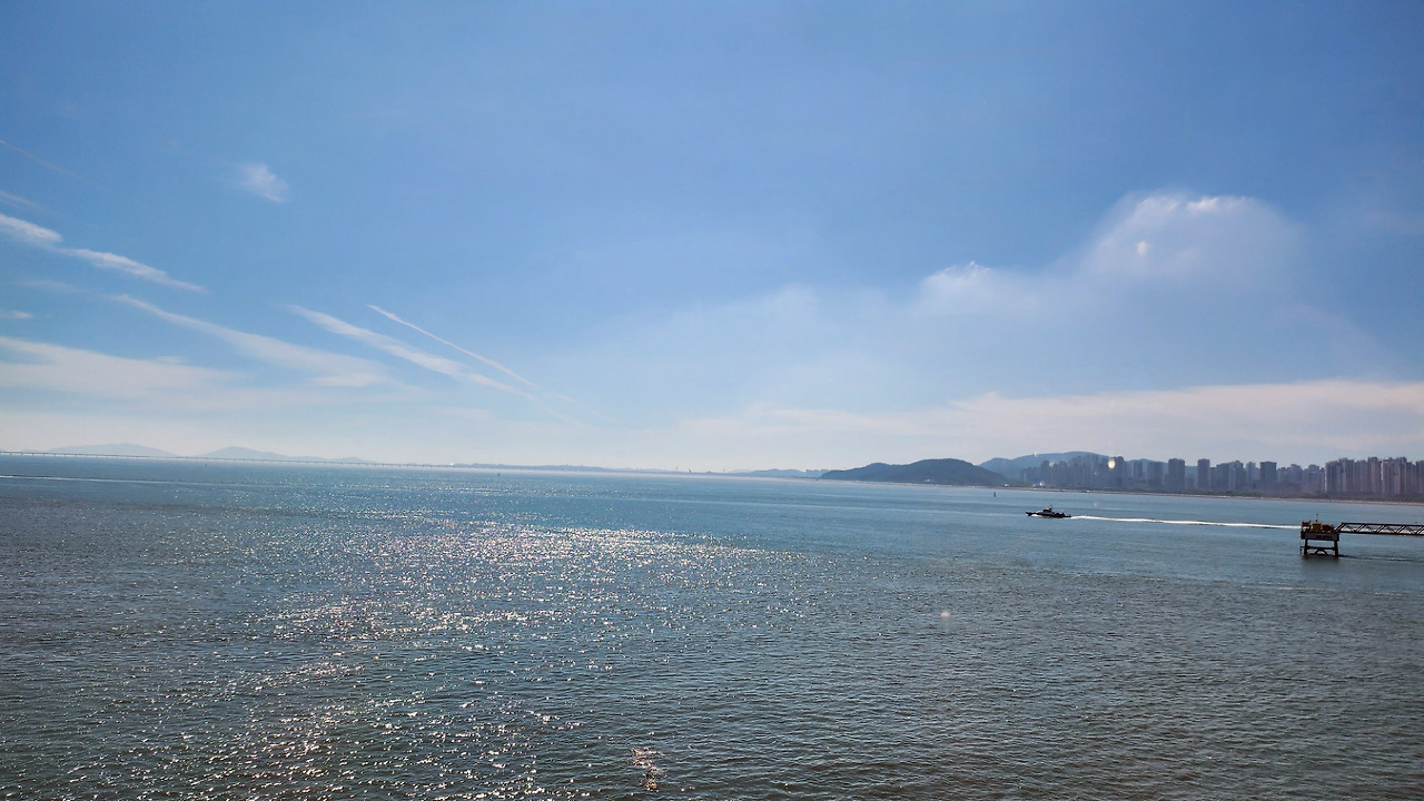 저 멀리 길이가 길기로 유명한 인천대교(약 22 킬로미터)도 흐릿하게 떠 있는 것이 보인다.
