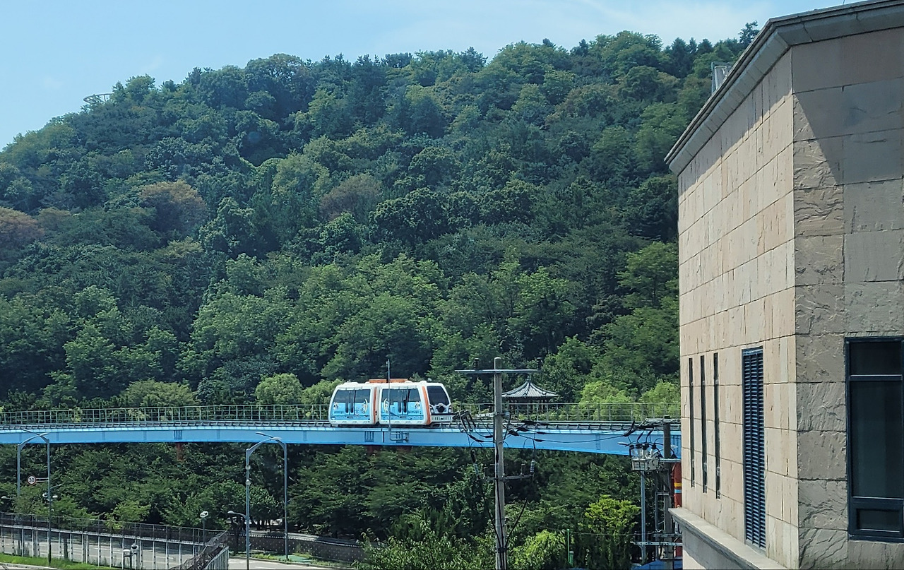 휴가철이어서 관광객들이 많지만 조금 기다리니 곧 우리 순서가 되어 모두 한꺼번에 탈 수 있다. 42명 정원으로 자그마한 차량 두대가 연결되어 도심 위로 떠오르듯 출발한다. 차 안에는 해설사가 동승하여 월미도에 관해 상세히 해설해 준다. 차이나타운이 보이는 한국 근대의 개항장인 인천의 구도심 앞을 지나서 월미도로 향한다.