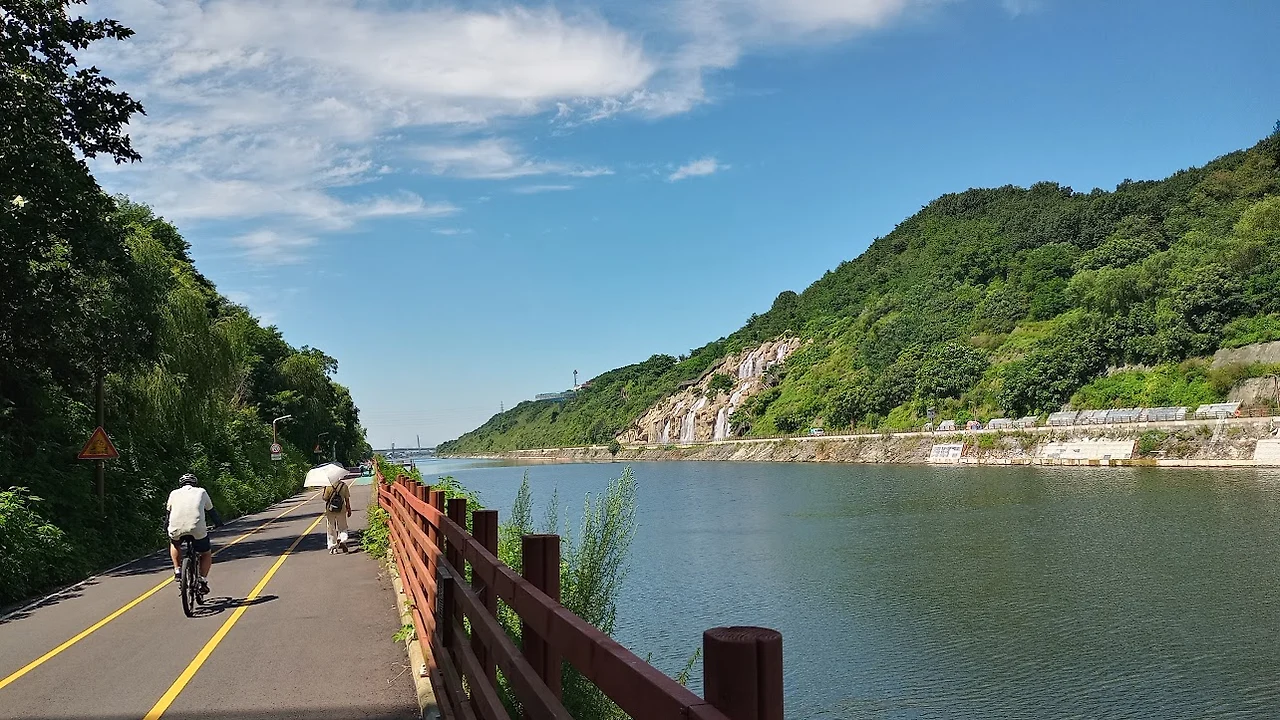계양역에서 도보로 폭포까지 가려면 우선 계양대교를 건너가서 반대편 강변길로 갔어야 했나 보다. 할 수 없이 폭포는 강건너에서 만 보는 것으로 만족할 수밖에 없다.