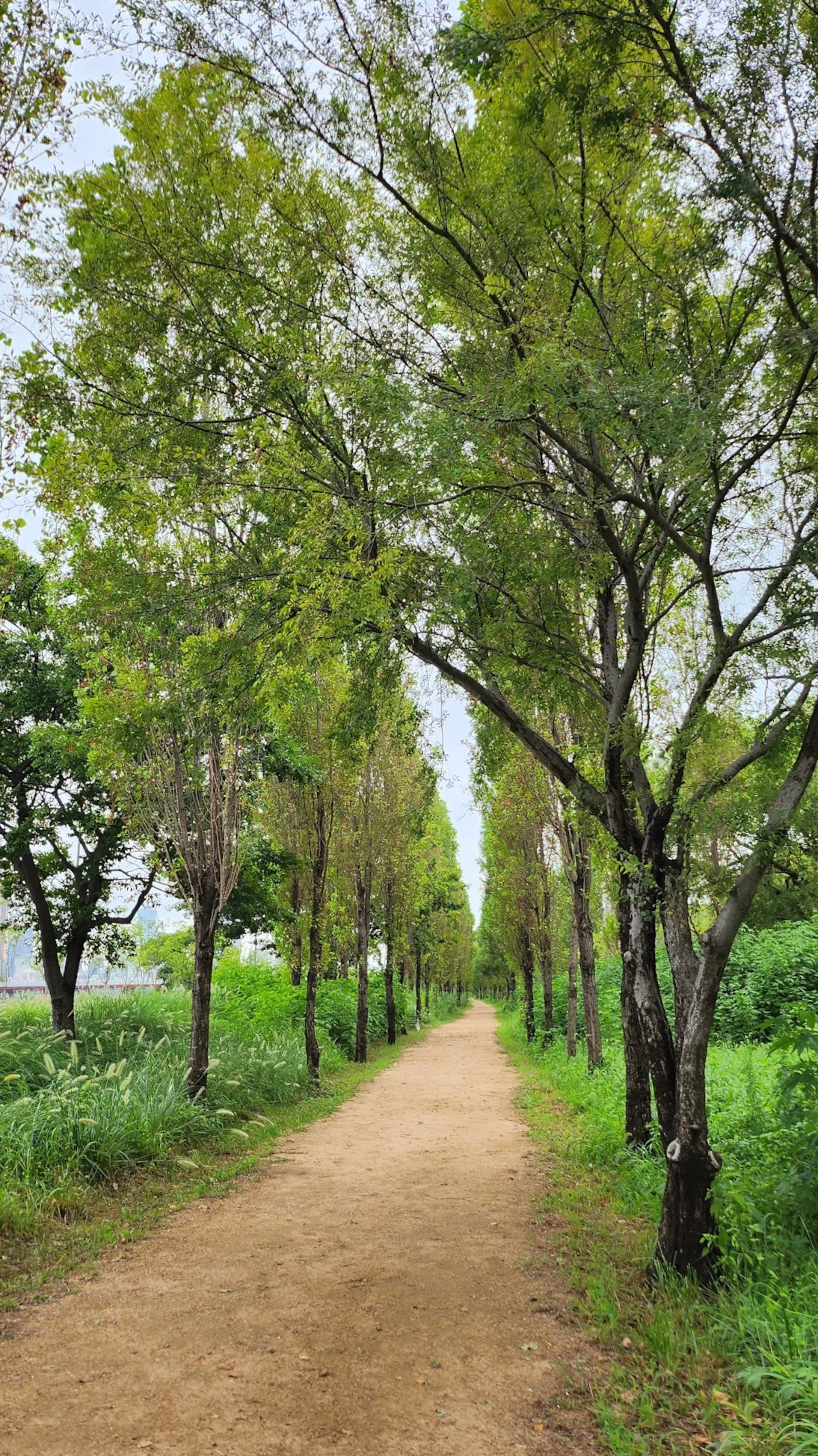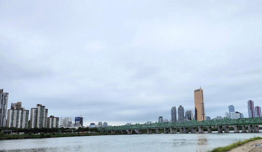 하늘이 흐리고 보슬비도 잠깐잠깐 내리지만 강바람이 시원해서 걷기 좋은 날씨다.