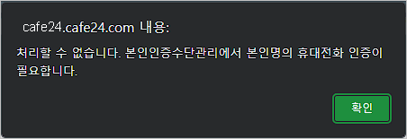 간단하게 계좌 정보만 입력하면 바로 등록이 되지만, 해당 계좌가 대표자의 계좌인지 확인하기 위해서는 대표자 명의의 휴대전화 인증이 필요하다. 쇼핑몰 기본 설정에서 인증 설정을 하지 않았다면 진행되지 않는다.