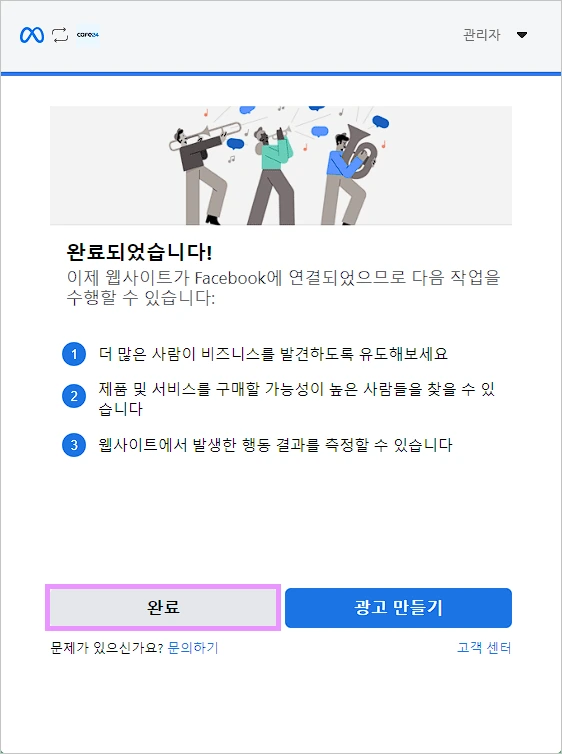 카페24 쇼핑몰(자사몰)을 메타(페이스북, 인스타그램)에서 광고하고 분석할 준비가 완료되었다. 이제 광고로 고객을 유입하고자 한다면 메타의 광고 관리자에서 광고를 세팅하고 운영, 관리할 수 있다.