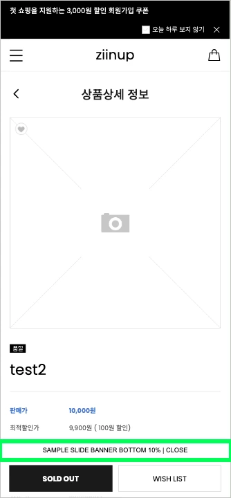 요청사항은 회원가입을 유도하는 밴딩 배너인데, 특이한 점은 하단에 배치해달라는 요청이다. 주로 하단에는 내비게이션이 있거나, 상품 상세페이지에서는 장바구니와 구매 버튼이 있기 때문에 배너를 배치하진 않는데, 지금 생각해 보면 자주 사용하는 영역이기에 내용을 인식시키기에는 좋은 위치인 것도 맞다.