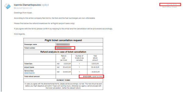 이번 화의 빌런 역할을 맡은 여행사로부터 생각보다 빠르게 반가지 않는 답장이 왔다. 이 여행사는 안읽씹으로 유명한 그리스 본사 여행사였다.