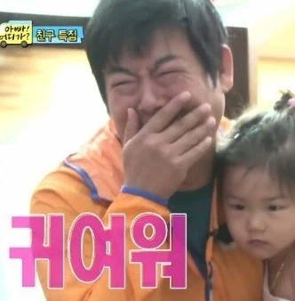 어? 아빠도 이 사람들이 저를 예뻐해 주는 것이 좋나봐요.
