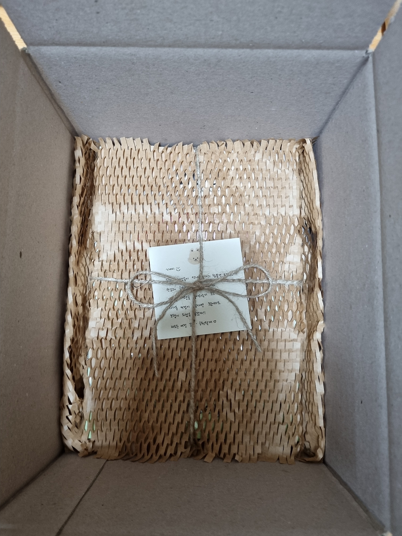 택배 상자 높이가 꽤 남는 편이어서 아래 위로 종이 완충제를 넉넉하게 채웠다. 부디 안전배송 되기를 바라며~~